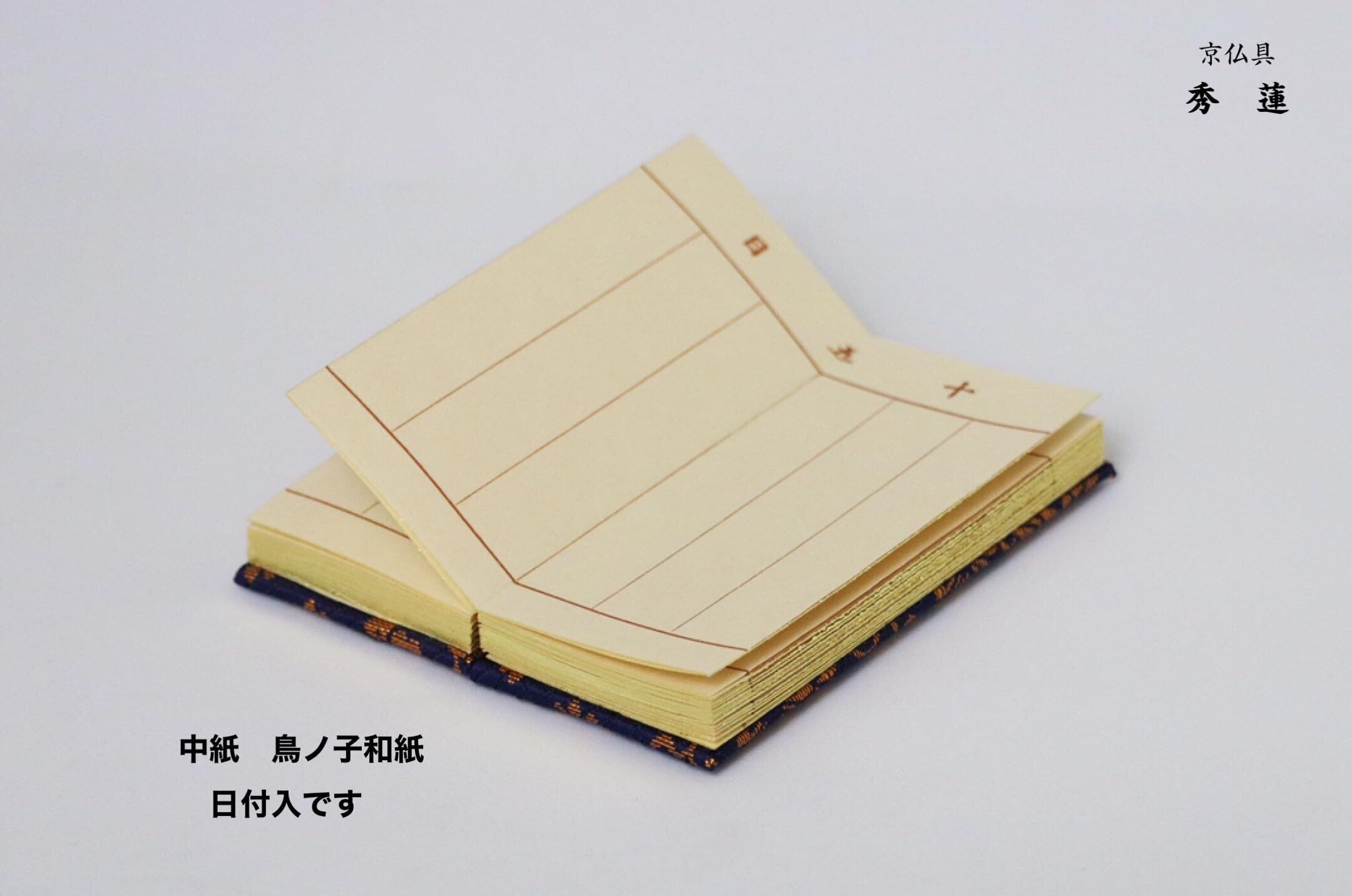 過去帳セット 各寸法ございます 幅があり背低タイプの倒れにくい過去帳台です 上金襴 日付入 紺 鳥の子和紙 京仏壇いせむら (5寸)