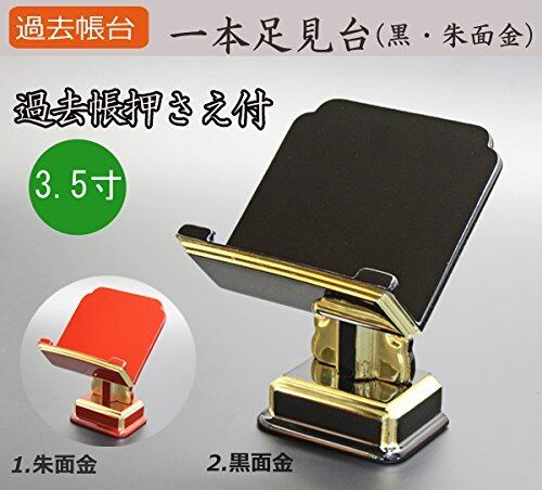 京仏壇はやし 過去帳台 一本足見台( 黒面金 ) 4寸 ◆高さ 約18cm 巾 約12cm 奥行 約11cm 過去帳押さえ付き 過去帳台 過去帳立て 過去帳見台 過去帳 黒 ブラック 金 仏壇 仏具
