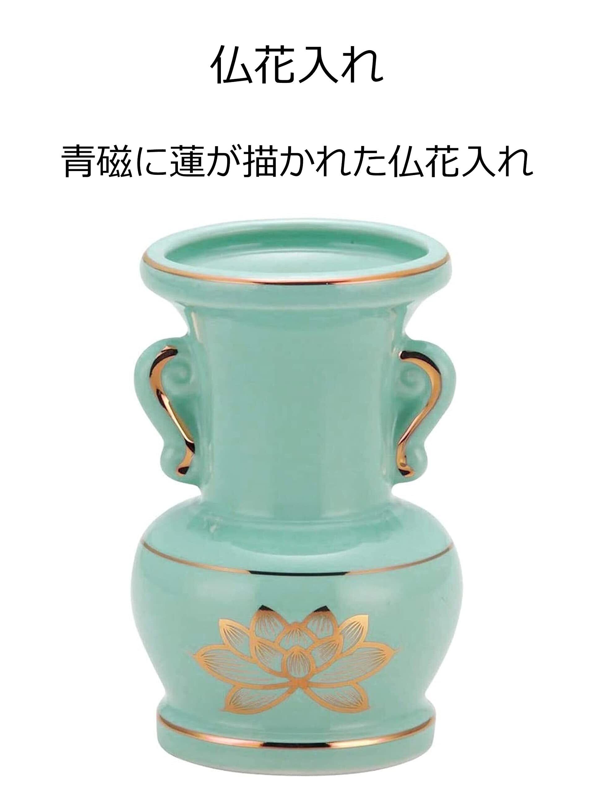 ✨【高級感あふれる青磁の質感に、手作業で施された上金装飾が見事に調和しています!】この特別なデザインは、見る人の目を引きつけ、供養の空間を一層華やかにします。