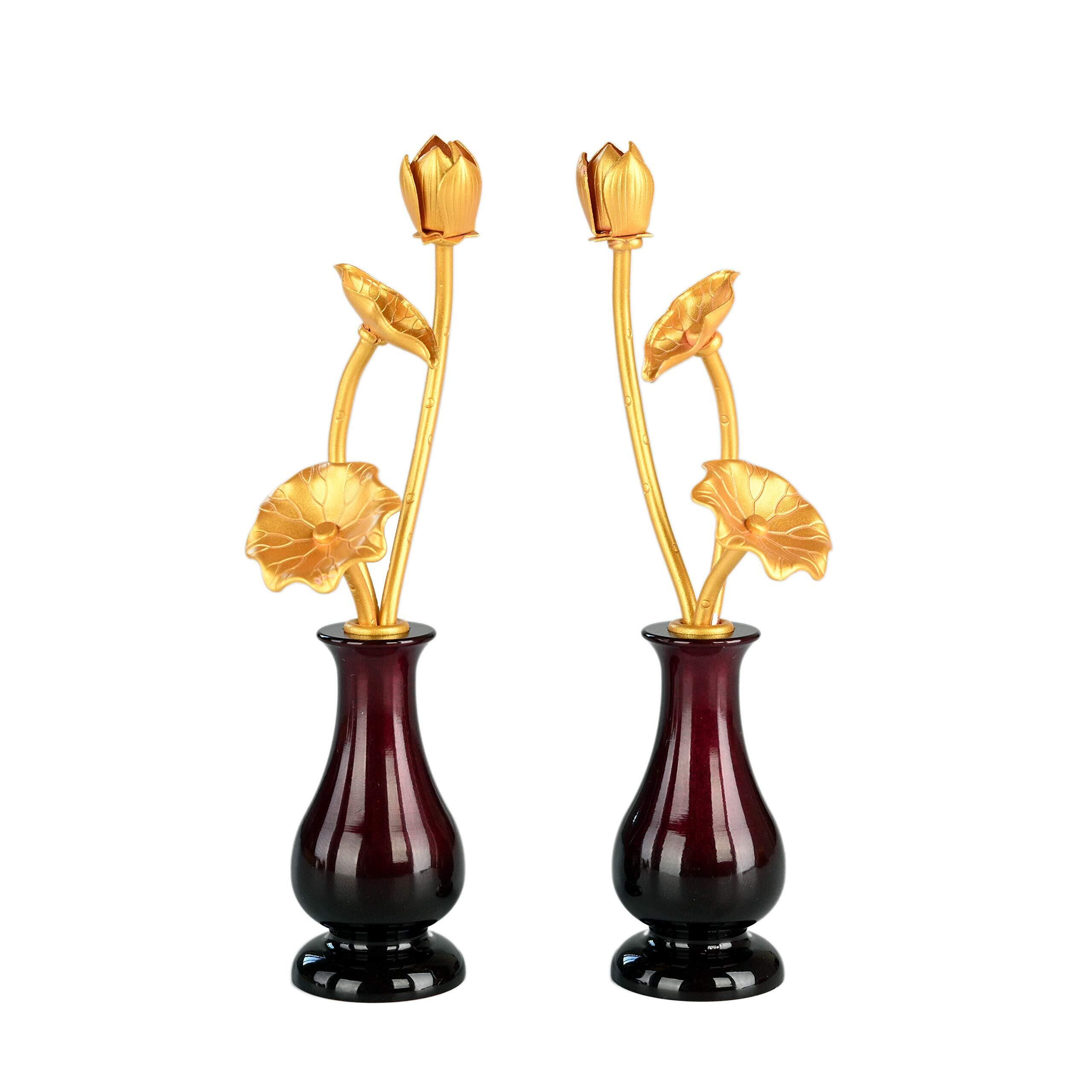 1対2本の常花セットです。サイズ違いや色違いもございます。 金属で作られており、お仏壇まわりを華やかに彩ります