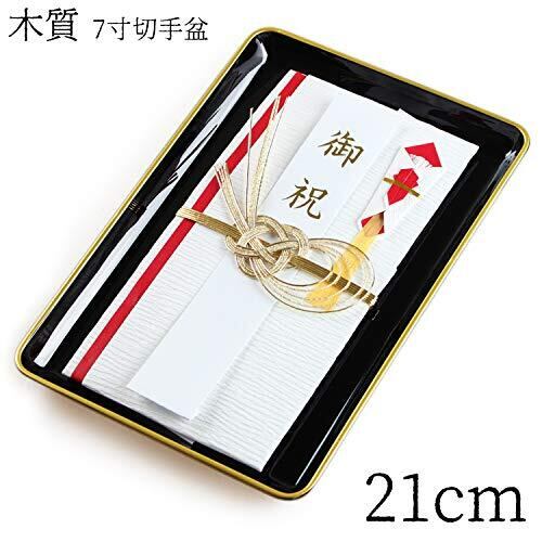 藤代工芸 切手盆 名刺盆(黒無地・金縁付き) (木質 7寸(金縁付き))日本製 国産 紀州塗 漆器