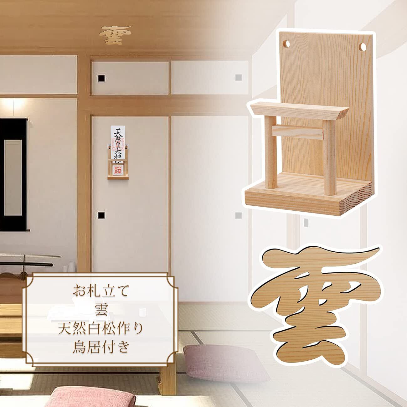 神棚&雲セット お札立て 御札立て お札 御札 神具 鳥居付き お札立て モダン 天然木使用 簡易神棚 おしゃれ 神棚ホルダー 置き型 壁掛け 簡単設置