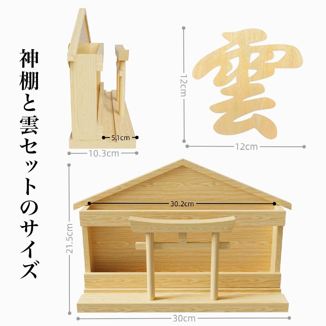 神棚 壁掛け お札立て 御札立て 鳥居付き 神札ホルダー モダンデザイン 天然木材 穴あけ不要 簡易神棚 置き型 (神棚 + 雲)セット size:37cmx23.5cmx10cm
