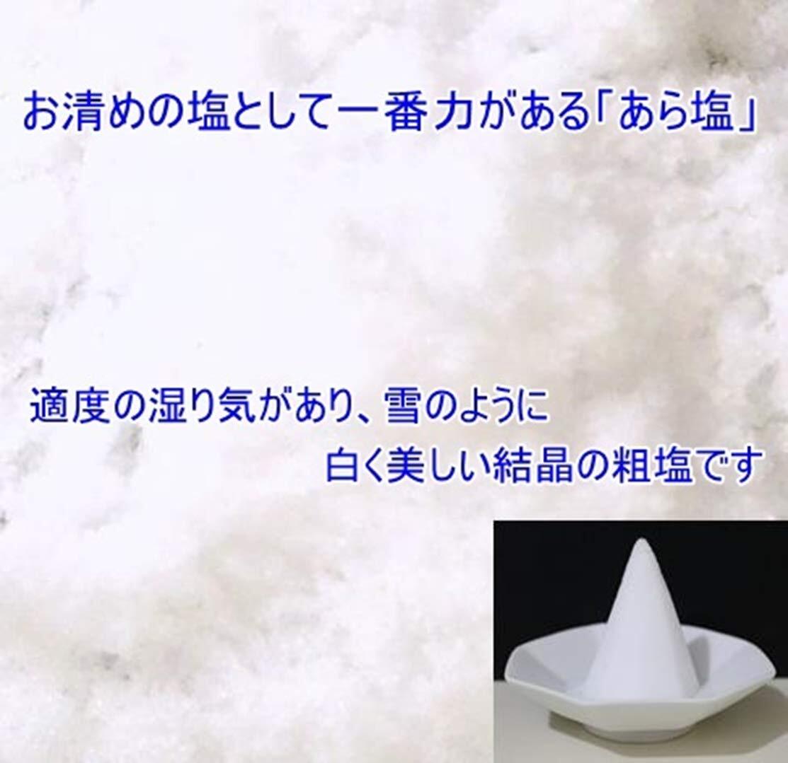 ※お清めの塩として1番力がある「粗塩」を用いて、厄除け・邪気払い・お清めを行い、日々の平安を願う中で、平釜製法により、海水を綺麗な結晶化させた盛り塩用 平釜炊きあらしおは、白く美しい結晶が特徴的な粗塩になります。しっとりしているので、塩同士がくっつきやすく、盛り塩が非常に作りやすく理想的な綺麗な形のまま置けますので盛り塩としては1番おすすめです。