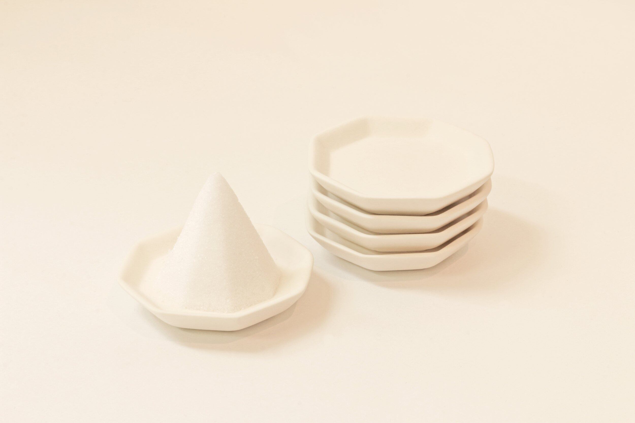 風水で縁起の良いとされる八角形、開運に、最も安定する形とされている八角形の盛り塩セット用のお皿です。