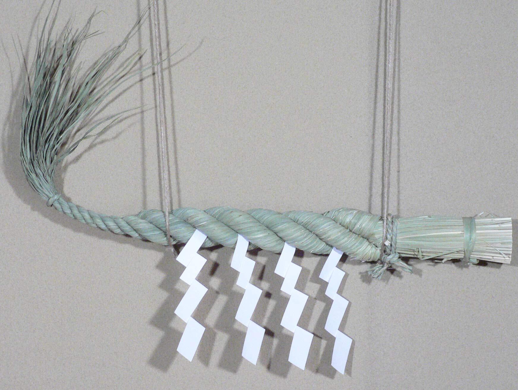 青い実取らずのワラから作った【 神棚用しめ縄 2尺(60cm) 御幣付】
