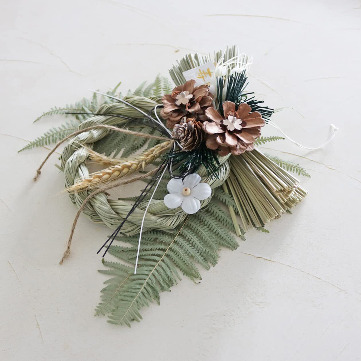 草・紙・麦穂・松の果実など植物由来からできた迎春飾り