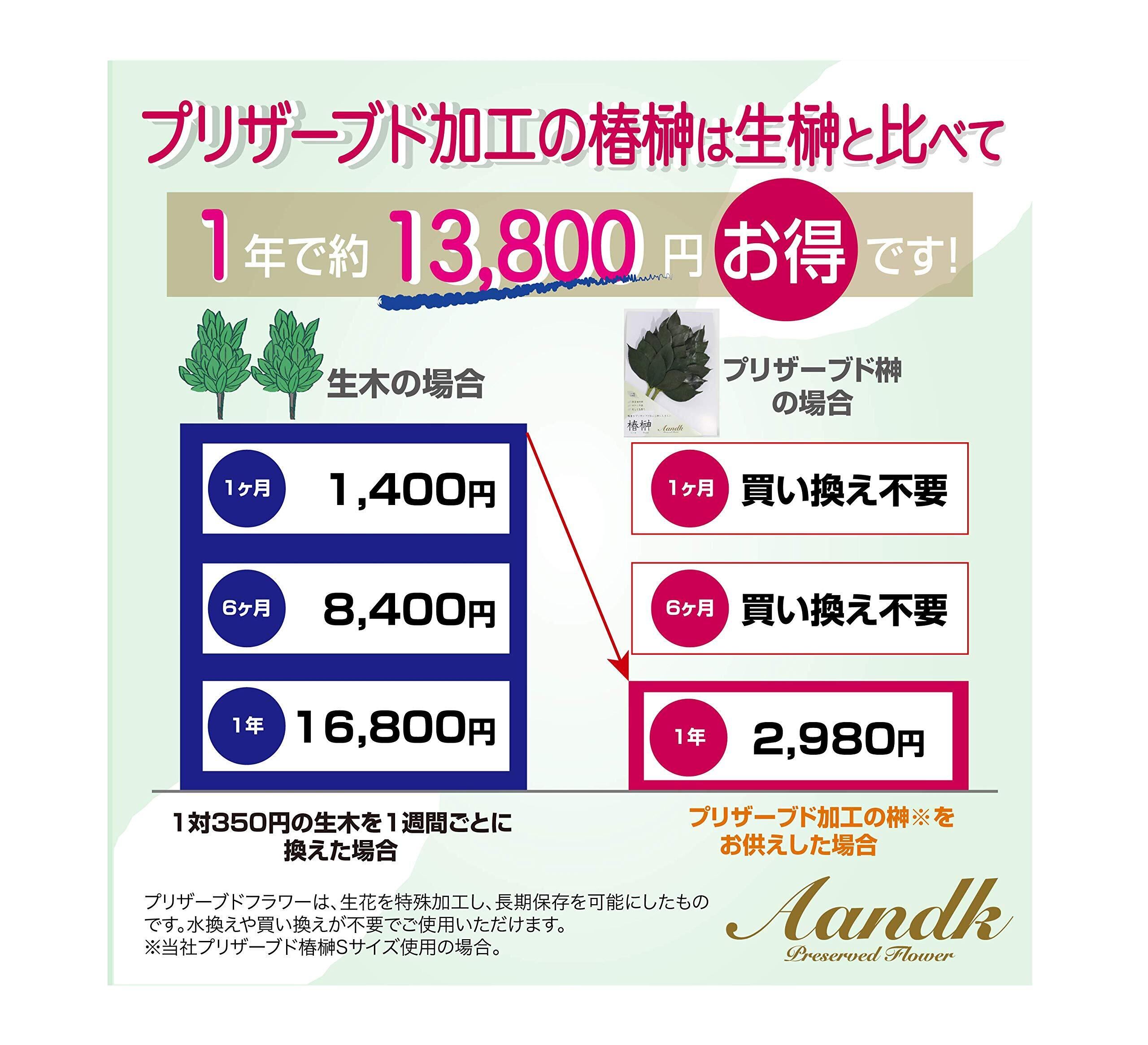 [A&K]暑さでも腐らない 廉価版 榊 S 国産天然榊 椿生葉使用 暑さ対策 腐らない 取り換え不要 手間いらず 水換え不要 長期のお供えに最適 プリザーブド加工 <実用新案登録第3222297号> 国産 手作り ハンドメイド 枯れない 榊 サカキ 一対 ミニサイズ 水やり不要 モダン 神棚 依り代 玉串 神具 お盆 彼岸 節約 安心 安全