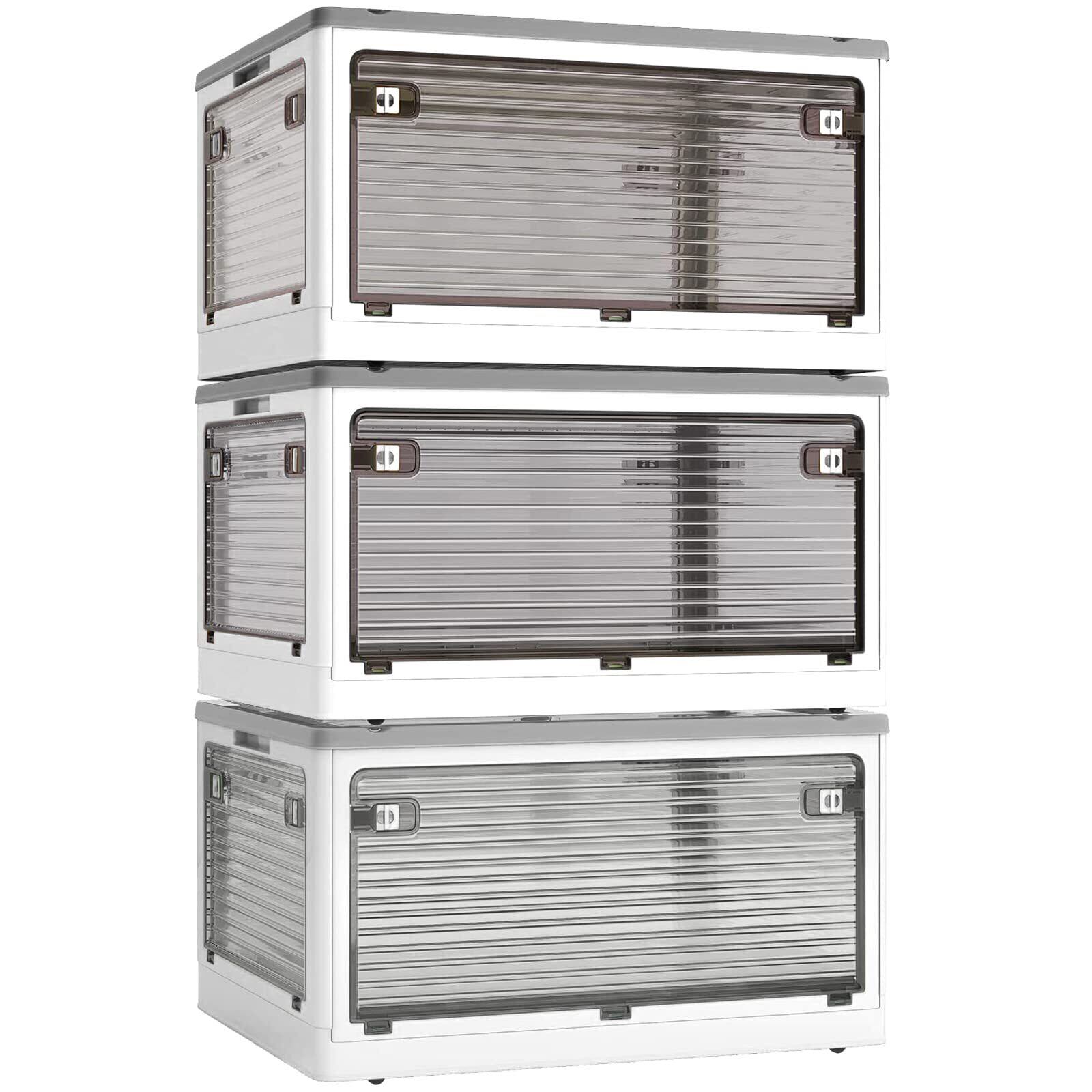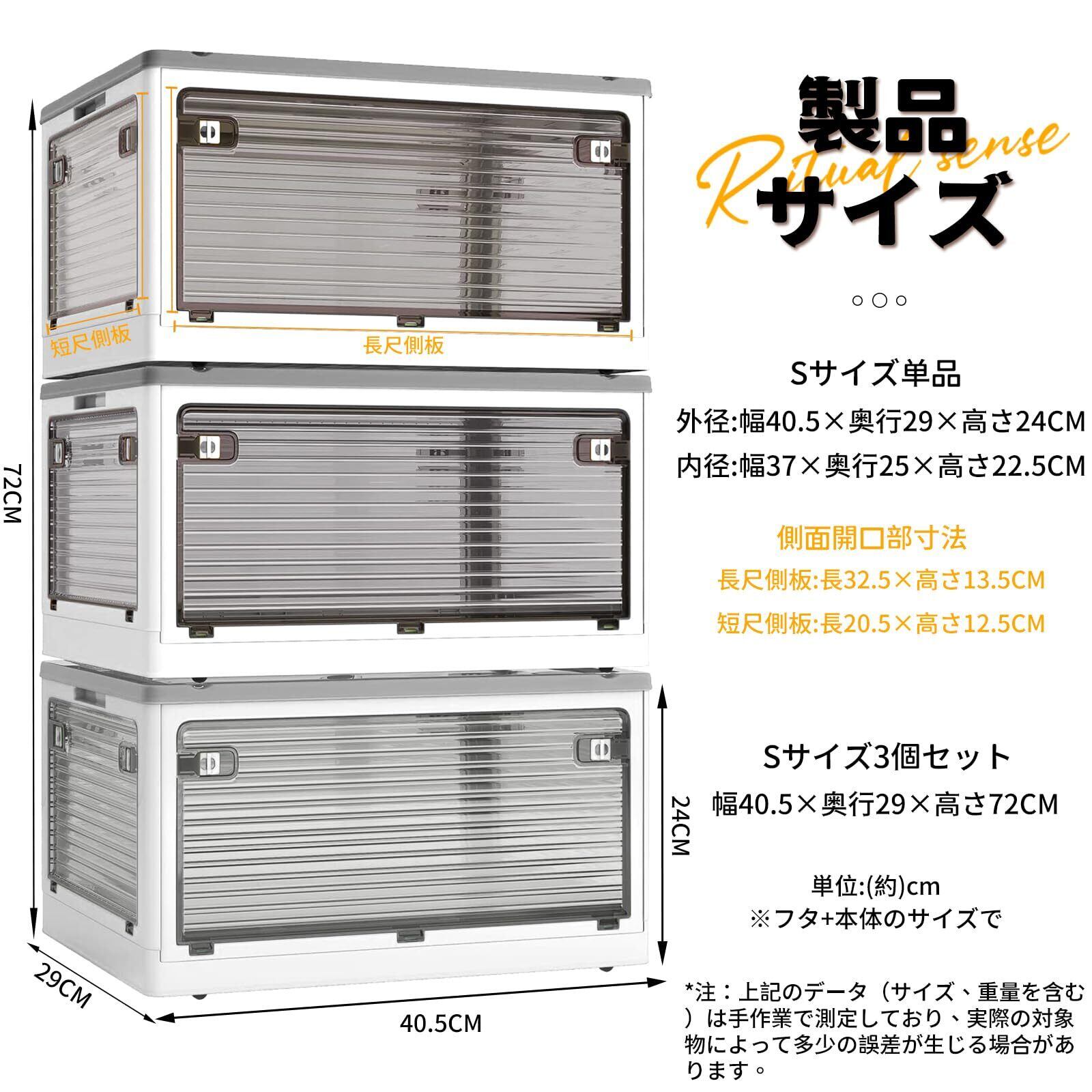 X XUNTAO【収納ボックス 折りたたみ】蓋付き 積み重ね 全方向から取り出せる 3個セット 収納ケース 衣類 布団 小物 収納 折り畳み コンテナ ボックス 大型 プラスチック キャスター付き おしゃれ 組立簡単 多機能 防塵 防カビ 防湿 無臭 半透明 厚み 強い耐荷重 大容量 家庭用 車用 複数のサイズ 各種カラー(S3個セット,40.5cm*29cm*24cm,28.2L)