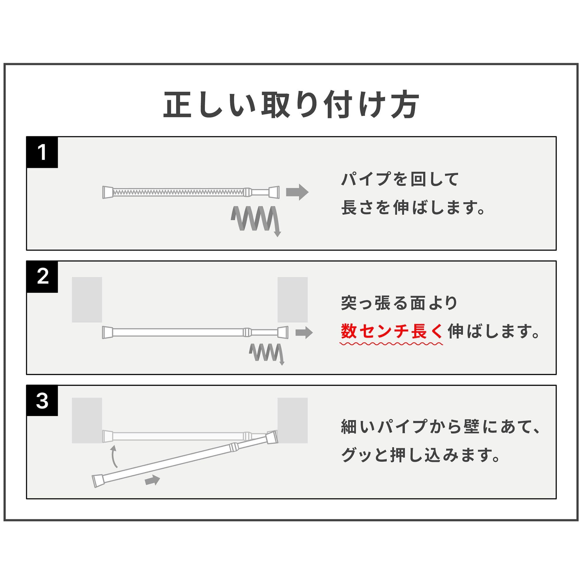 【サイズ】幅110~190×高2.7×奥行2.7cm【取付幅】110~190cm【パイプ径】1.6cm