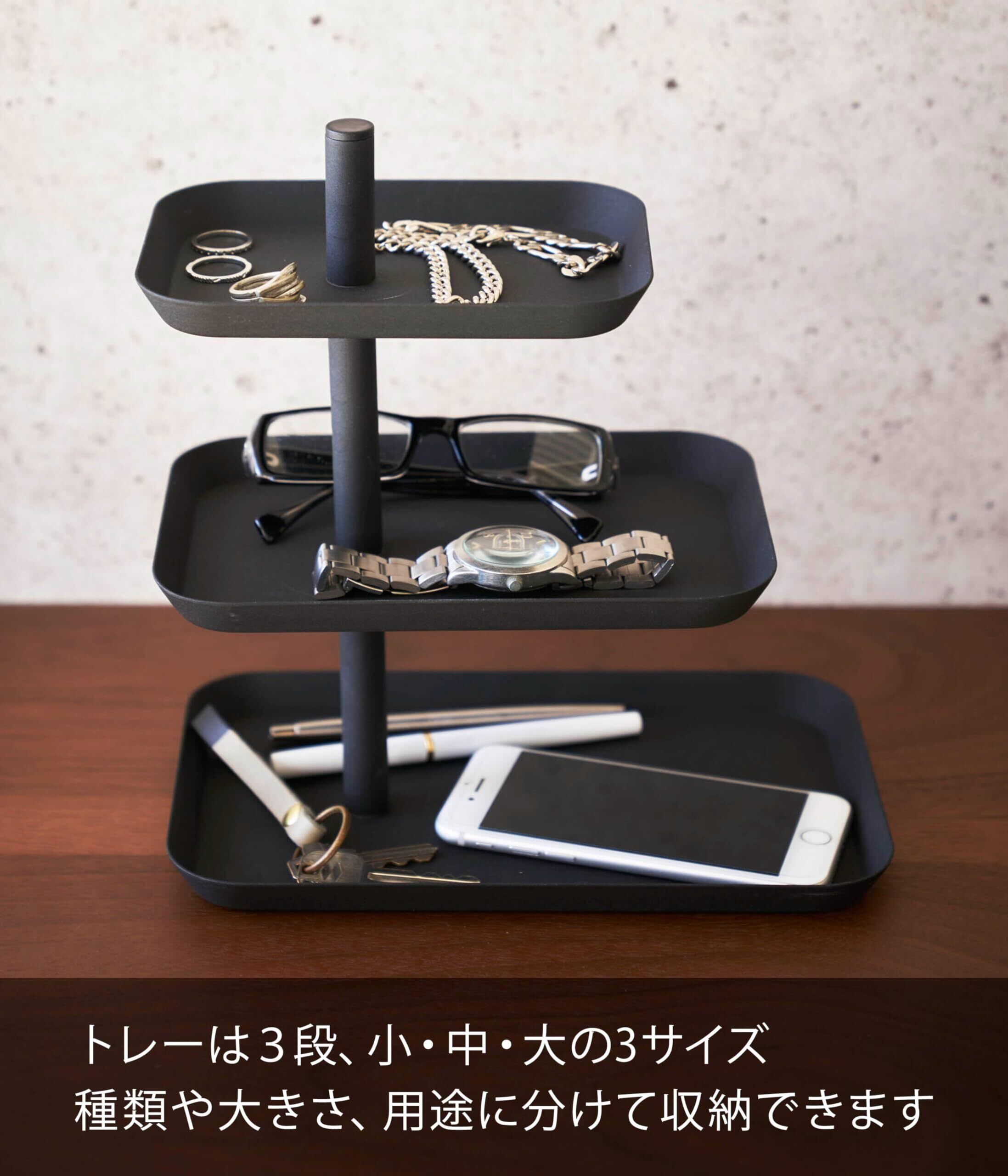 山崎実業(Yamazaki) アクセサリー 3段 トレー タワー ブラック 約W24.7XD15.7XH25.7cm タワー 小物入れ アクセサリー収納 4725