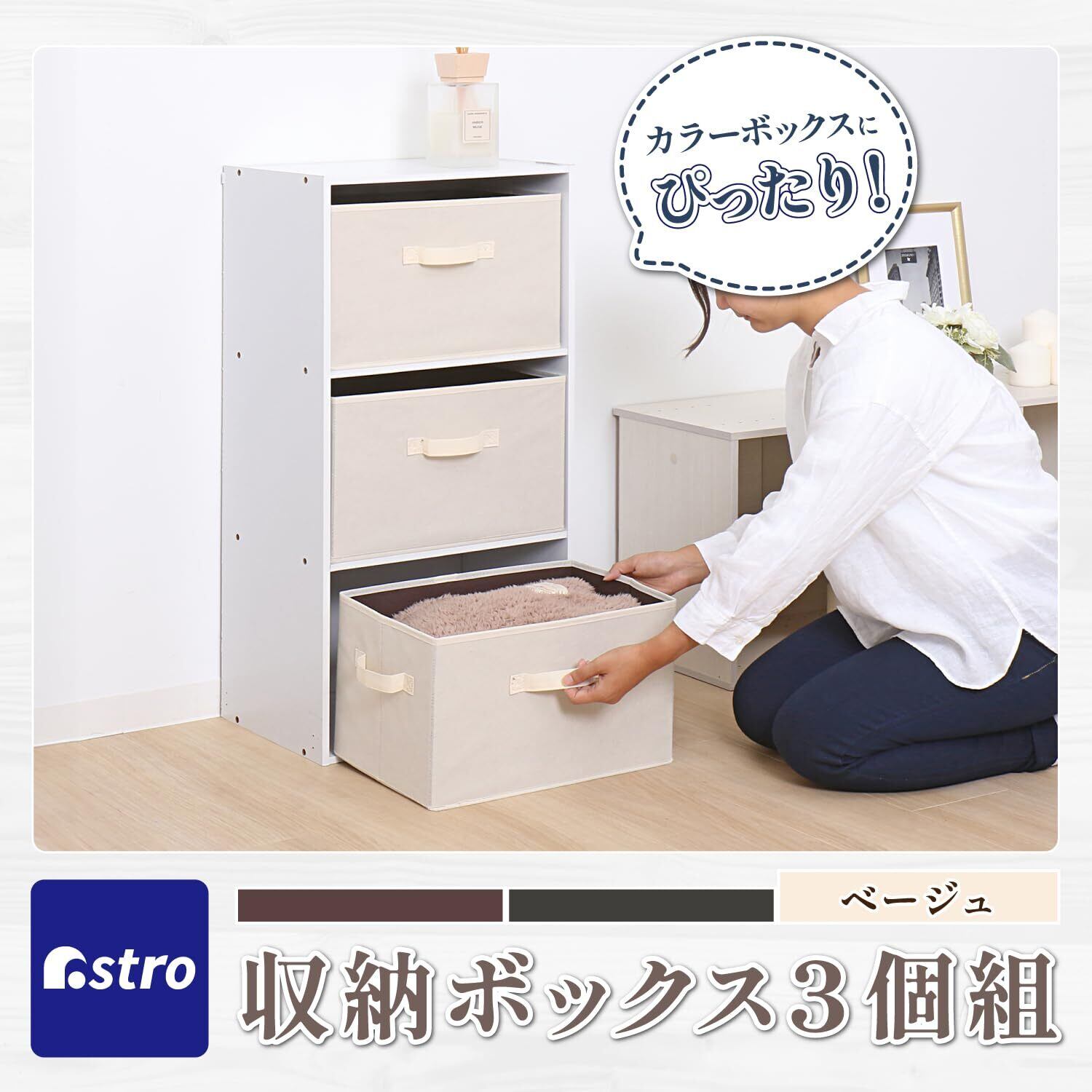 アストロ 収納ボックス 3個セット 不織布製 カラーボックスにぴったり ベージュ×ブラウン 容量20L 衣類収納 おもちゃ収納 リビング収納 小物入れ 文書箱 おしゃれ 高見え 606-62