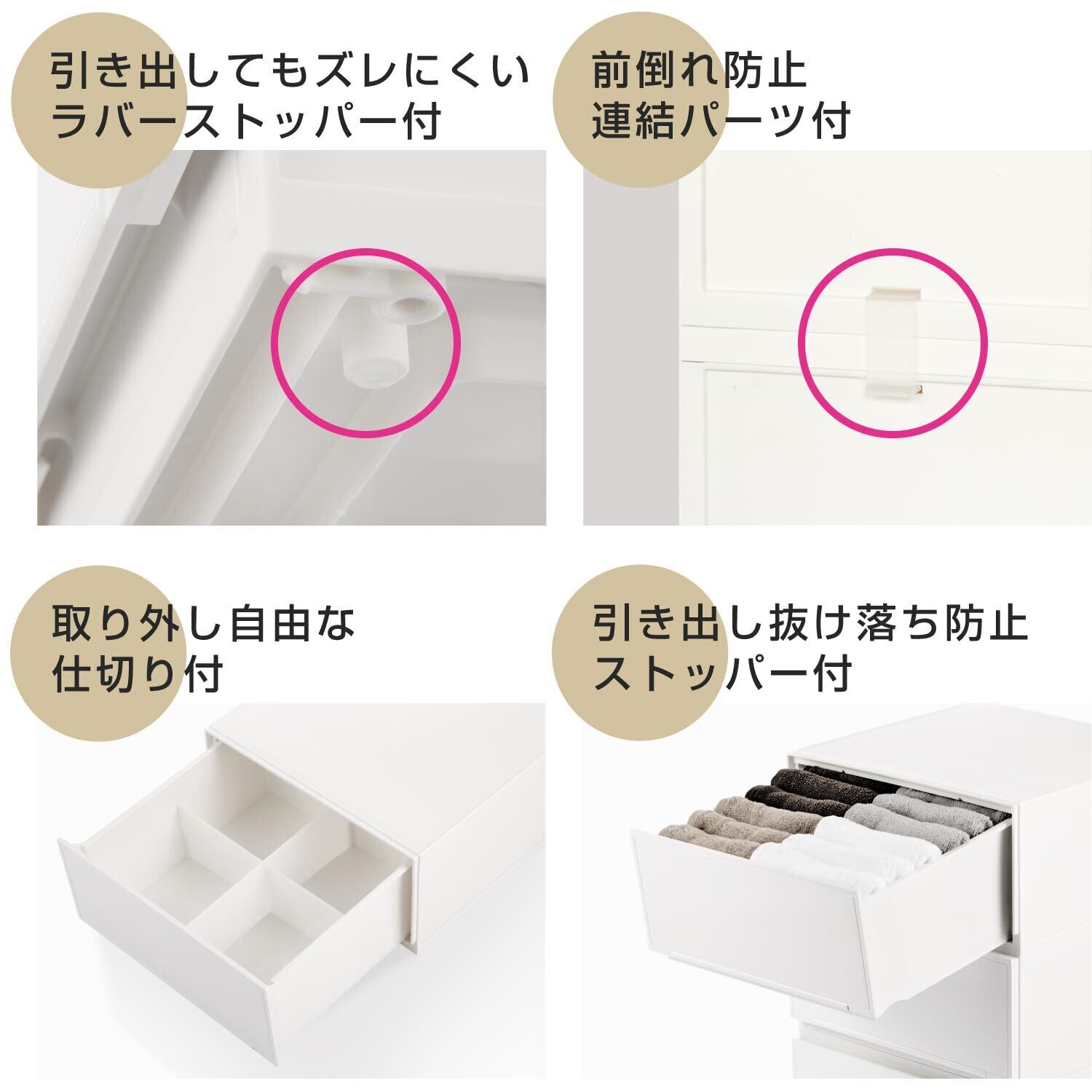 ✨【スルっと引き出せる設計が便利です!】出し入れが楽な引き出し式のデザインで、収納したものの取り出しもスムーズ。ズレを防ぐラバーストッパーがついており、安定した使用感を実現しております。