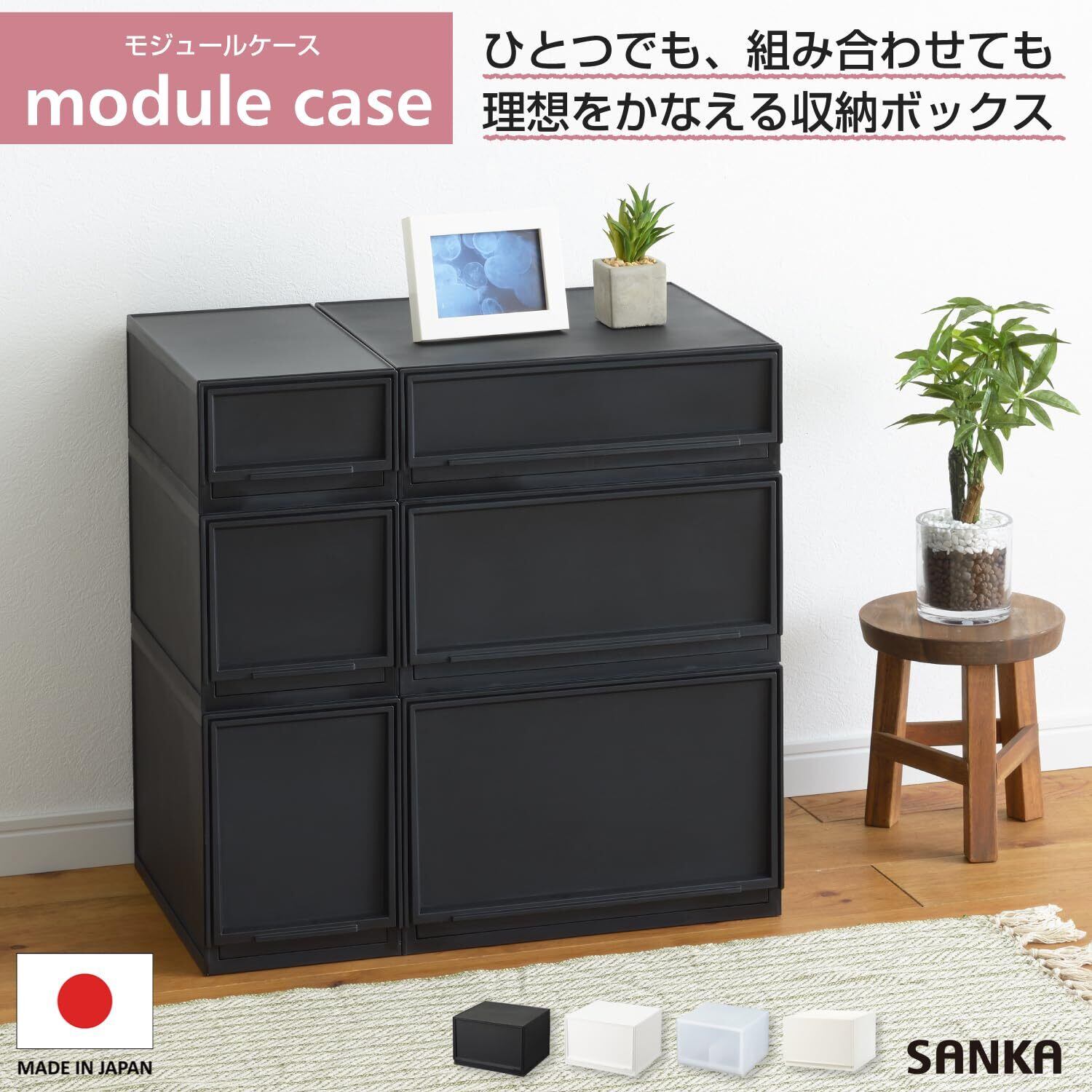 ✨【この「サンカ モジュールケース」は、使いやすさとデザイン性を兼ね備えた引き出し収納ケースです!】サイズは37.6×35.5×25cmで、小物から衣類まで多様なアイテムの収納に最適。シックなブラックカラーが、どんなインテリアにも溶け込みます。日本製の安心感と高品質な素材を使用し、長くお使いいただけます。
