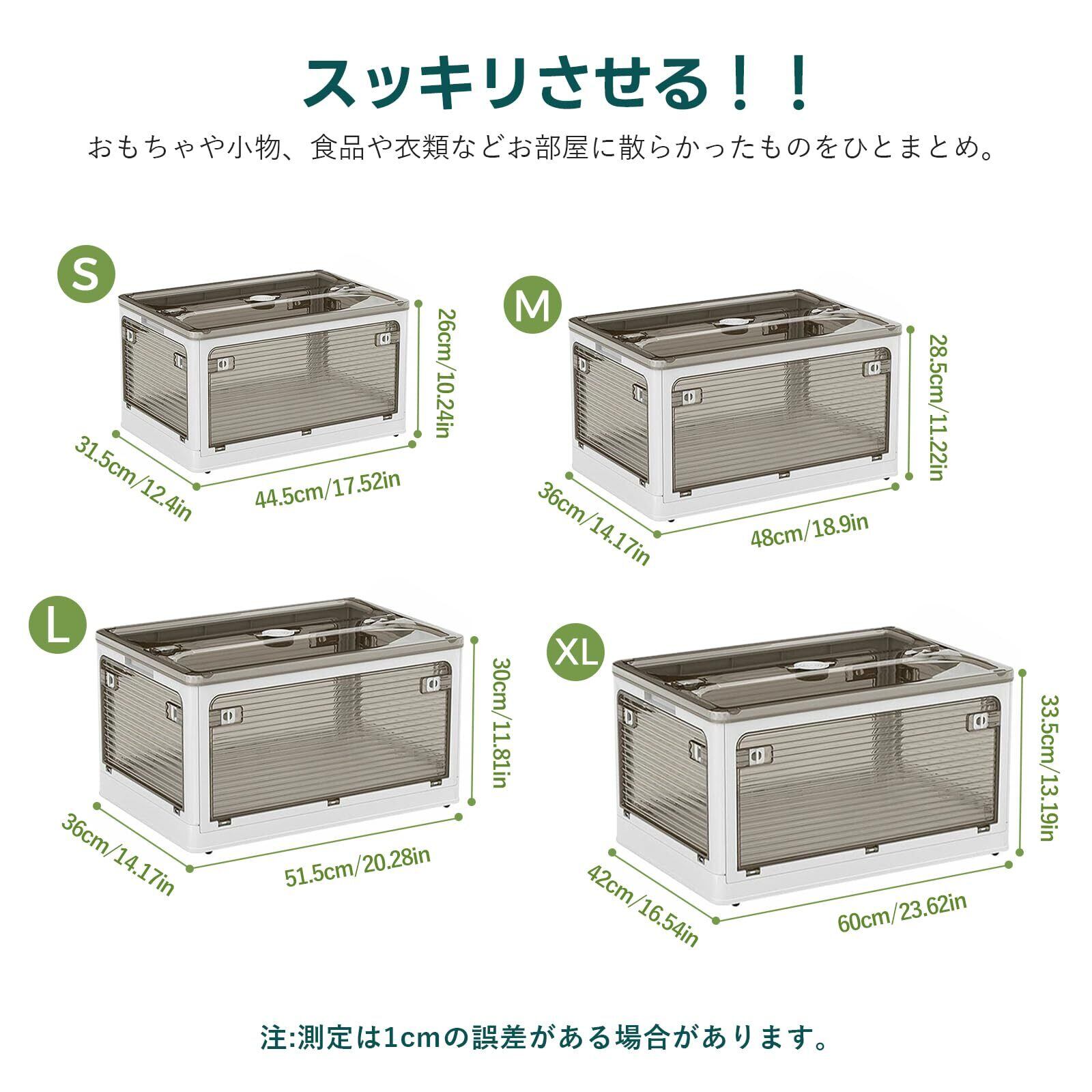 Freely 多機能折りたたみ収納ボックス 積み重ね可能 蓋付き 大容量 キャスター付き 防塵防湿防虫 ABS樹脂 家庭用/車載/アウトドア対応 5面開閉式 簡単組み立て 衣類・布団・本・食品収納 XL(60×42×33.5)cm,84.5L