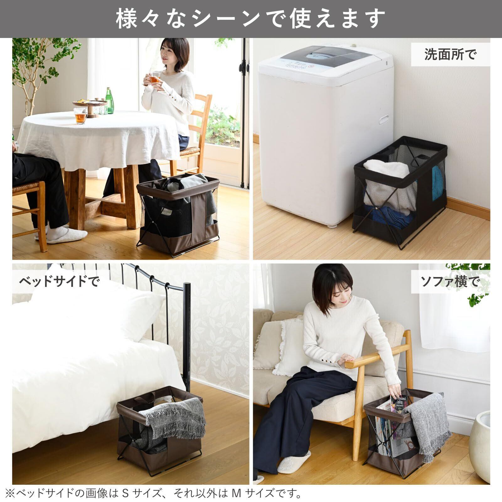 ●バスケット部とフレームは分離可能、取っ手付きで持ち運びも可能