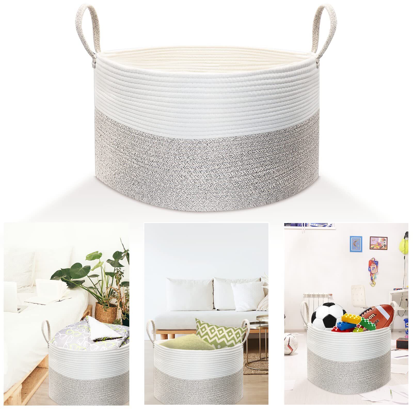 大型収納バスケット コットン ロープ 織り 大容量83L 洗濯かご ランドリーバスケット-直径55*高さ35㎝ キッズ 服 赤ちゃん部屋 子供のおもちゃ ストレージ バスケット ハンドル付き ホーム オーガナイザーボックス