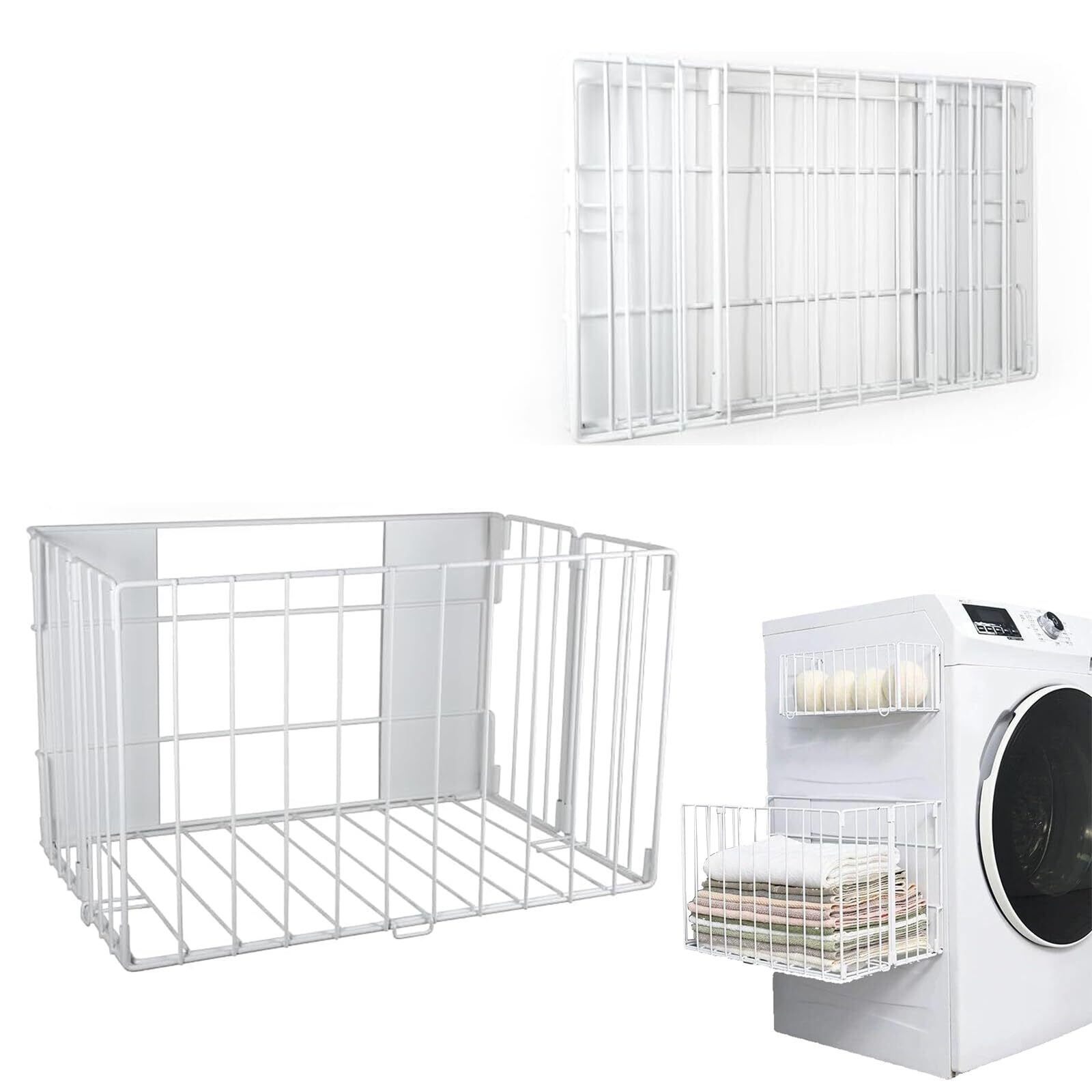 磁石 バスケット 折りたたみ 洗濯機 スチール製 隙間収納 取り付け不要 穴あけ不要 洗濯機 ラック マグネットバスケット 強力 吸着式壁掛け マグネット カゴ 42.5×26.1×26.1cm 冷蔵庫横収納 キッチン 収納 洗面所 省スペース 耐荷重5kg (L,白) [並行輸入品]