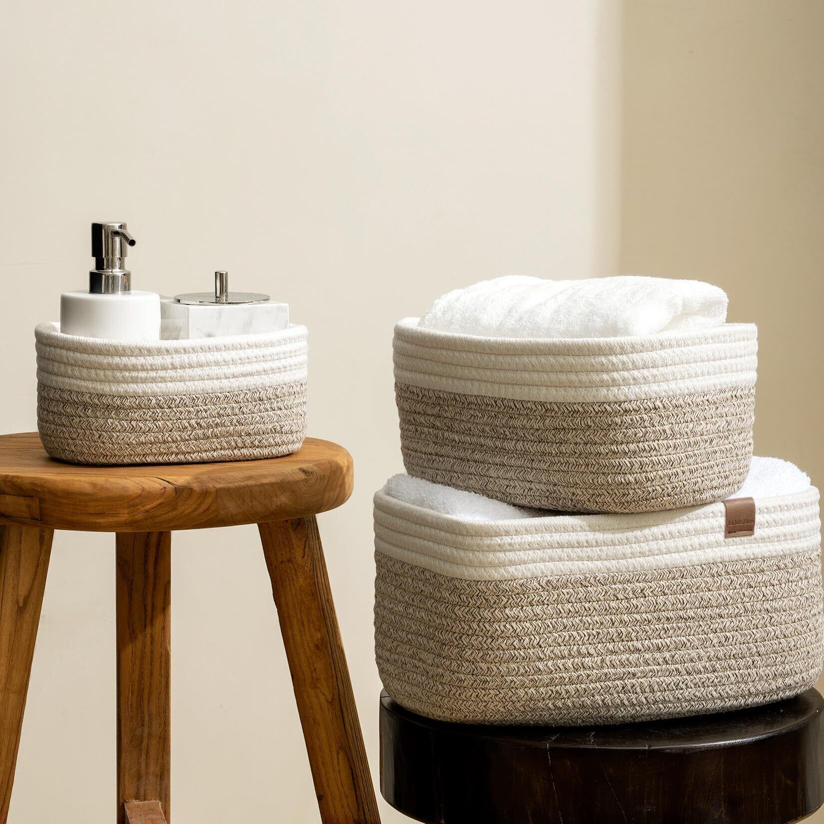 LA JOLIE MUSE 収納バスケット 北欧 カゴ 3点セット コットンロープ 編み込み 積み重ね ホワイト ライトブラウン