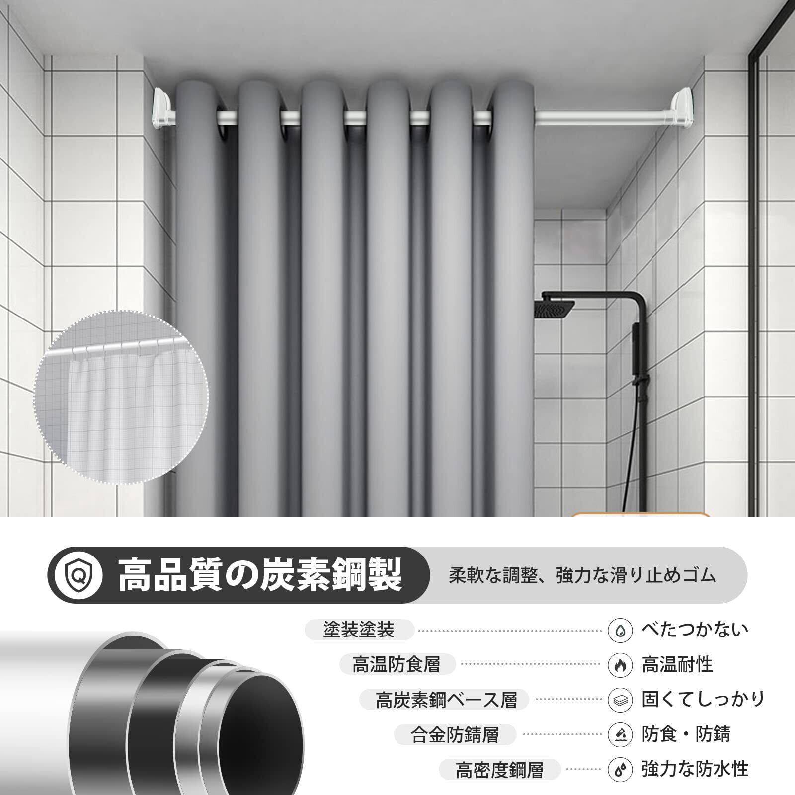 【 内容 】つっぱり棒245~430cm , ホワイト , この製品は旧モデルをベースに改良されており、美しい外観と,高い耐荷重性、 さまざまな場所で使用でき、同時に再利用できます ,棒に穴がなく、完全に防水防錆することができます。