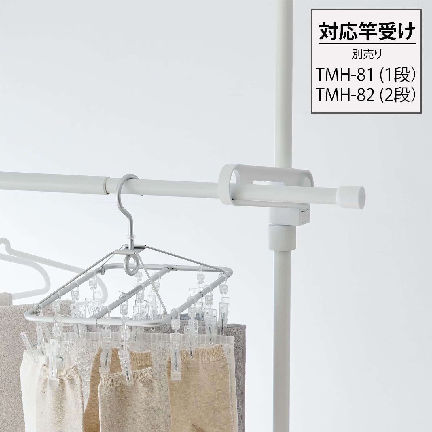 同じ素材の竿受け(別売り) と組み合わせれば、統一感のある印象に。●物干し竿受け 1段 TMH-81 ●物干し竿受け 2段 TMH-82