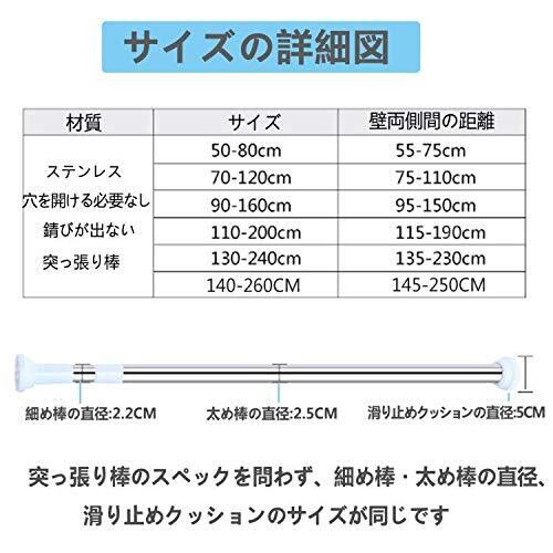 YOUDUO突っ張り棒 強力つっぱり棒 ツッパリ棒 幅50-240CM 浴室用ステンレス超強力伸縮棒 取付寸法 115~190cm 耐荷重60~15kg