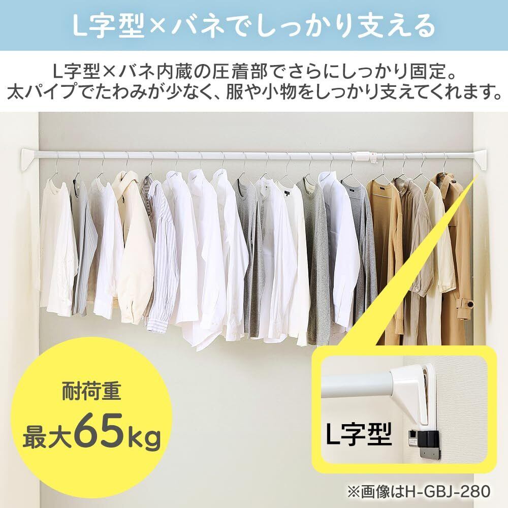 アイリスオーヤマ 極太強力伸縮棒 つっぱり棒 極太 最大耐荷重65㎏ 伸縮棒110-190㎝ L字型 物干し 部屋干し つっぱり H-GBJ-190R ホワイト