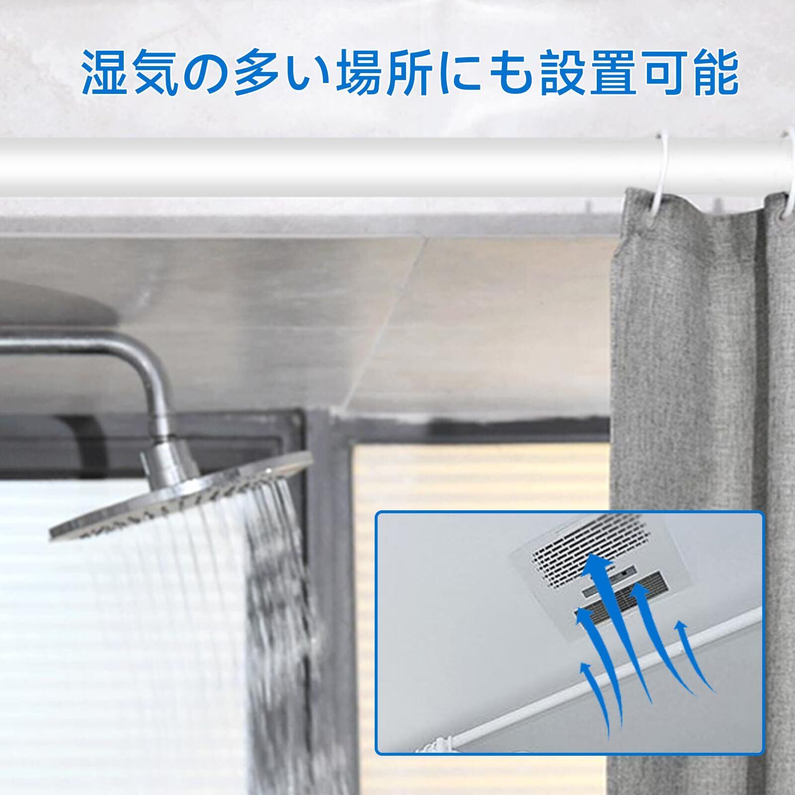 【錆びない高品質素材】つっぱり棒は高強度炭素鋼製で、表面に防錆塗装をされ、錆びとカビに強くて、湿気の多い浴室に設置可能です。伸縮ポールの両端には高品質なABS素材を採用し、耐久性と防湿性に優れ、湿気によって吸着力が弱まったり、落下したりする心配もありません。乾燥機や換気扇で洗濯物を乾燥させたい方にぴったりです。お風呂場や水回りでも錆びる心配せず、安心して使用できます。シンプルなデザインでインテリアを邪魔しません。