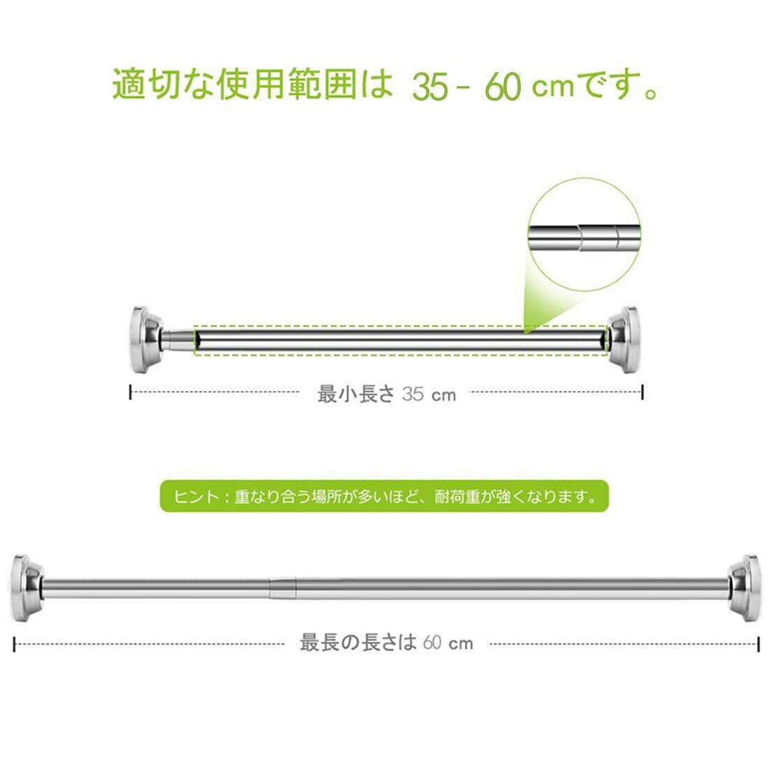 QF つっぱり棒 伸縮棒 カーテンレール ステンレス 省スペース 長さ調節可能35-60CM 最大耐荷重15kg キッチン 洗面台 浴室 お風呂 押入れ