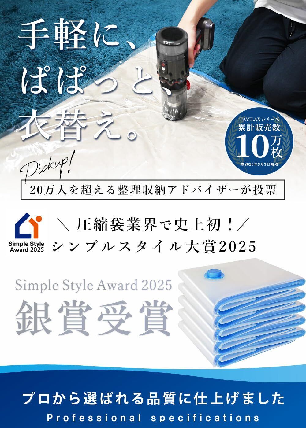 直射日光を避け、高温多湿な場所での保管をお勧めいたします。圧縮後はしっかりと密封し、長期保存が可能です。