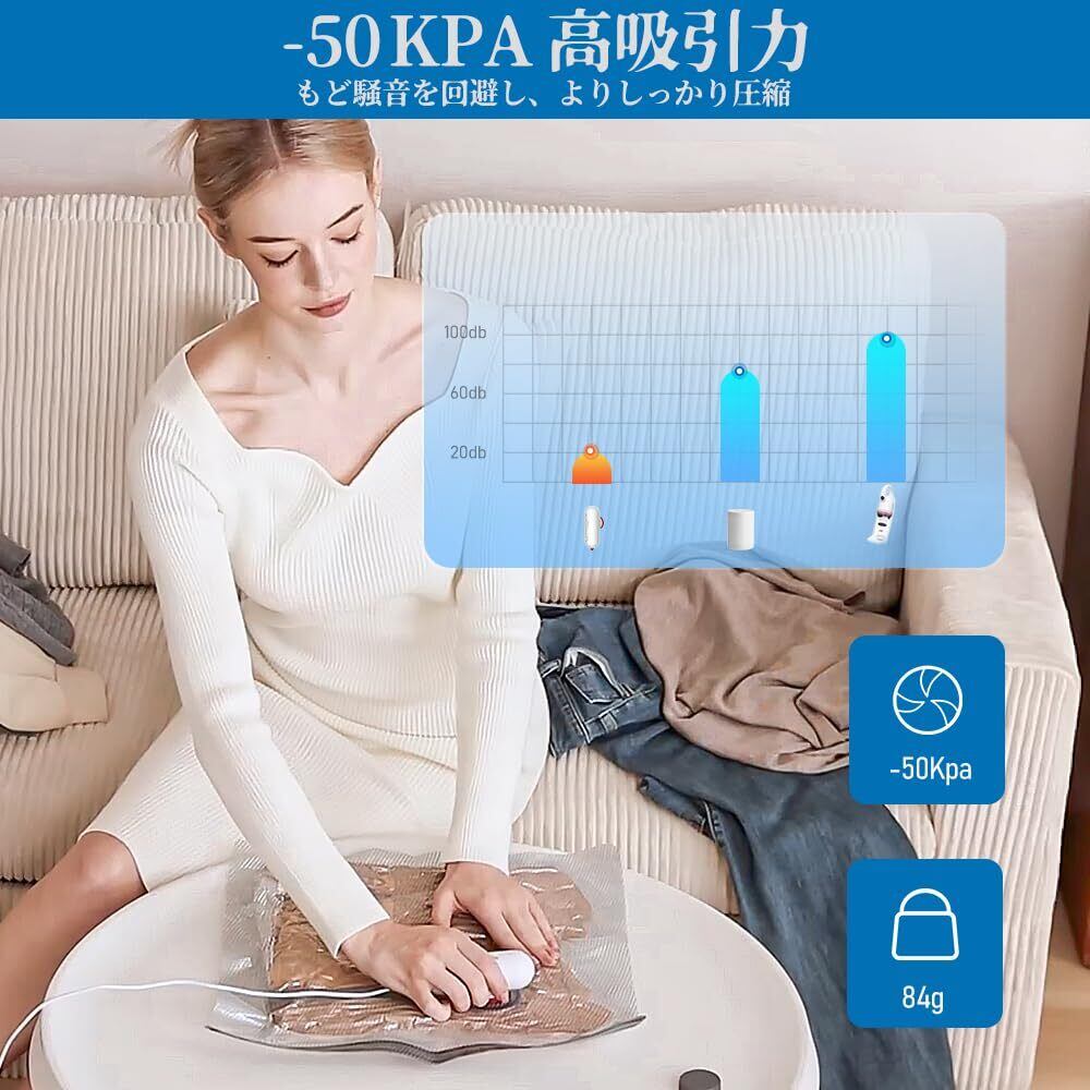 USB 電動ポンプ :この真空ポンプは最高50 Kpaの吸引力があるで、手巻き式のように圧縮袋を密閉しようとして疲れたりすることがない。そこには、2A以上USBを使用ので、電源アダプタやノートパソコン、モバイル電源を使って簡単に給電できる.更に、いつでもどこでも簡単に空気を抜くことができます、出張や旅行先でスーツケースに収納する際も、服をできるだけ小さく・タイトにすることができる.