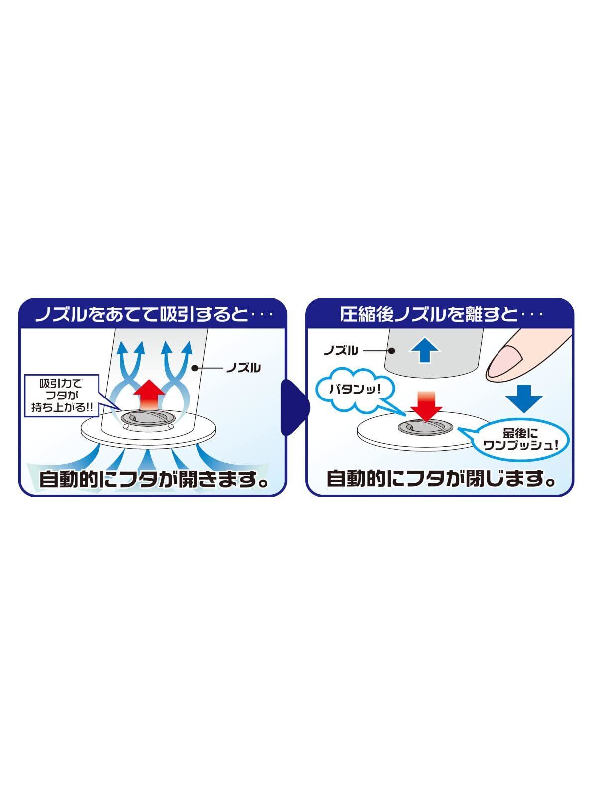 材質:ふとん圧縮袋/ナイロン(特殊ポリエチレン) フタ(一体式)/ポリエチレン バルブ本体/ポリエチレン スライダー/ポリエチレン 弁パッキン/NBR