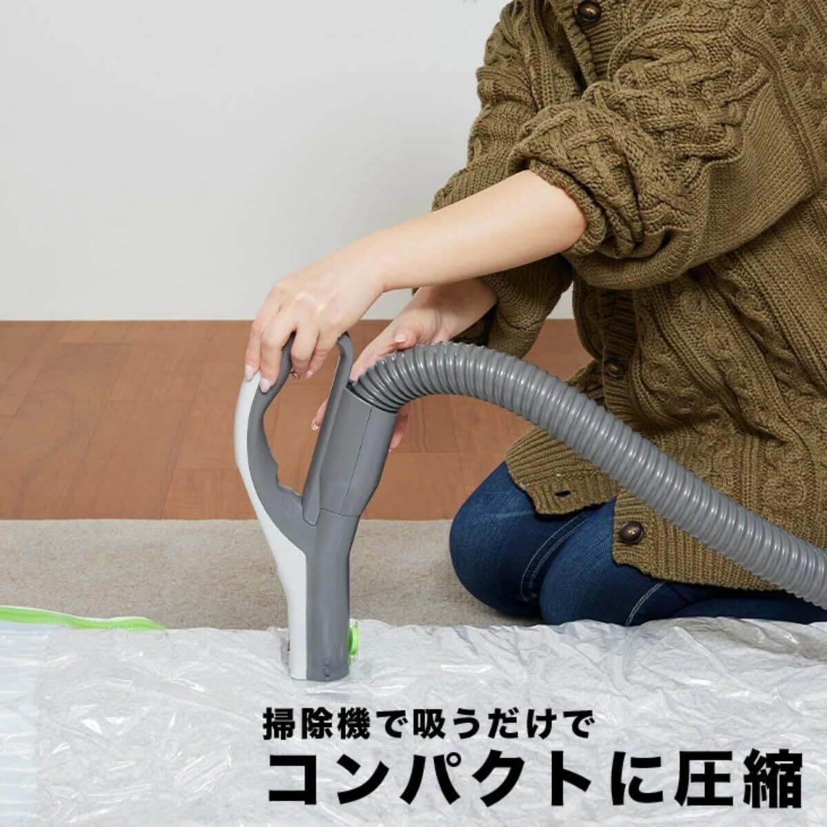 ✨【掃除機を使用して手軽に圧縮が可能です!】バルブに掃除機のノズルをあてるだけで、空気を素早く抜き取ることができるため、面倒な手間を省いて効率的に収納できます。