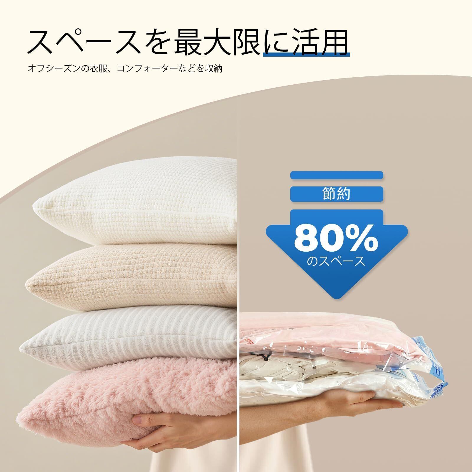 高速&パワフル圧縮:省スペース布団圧縮袋 掃除機不要は、収納スペースを最大80%拡大します。付属のコードレスエアポンプは13 CFM(360 L/分)の強力な空気流量を発生し、1つの布団収納袋をわずか10~15秒で圧縮します。衣類、寝具、毛布、旅行の必需品などを簡単に収納できます。