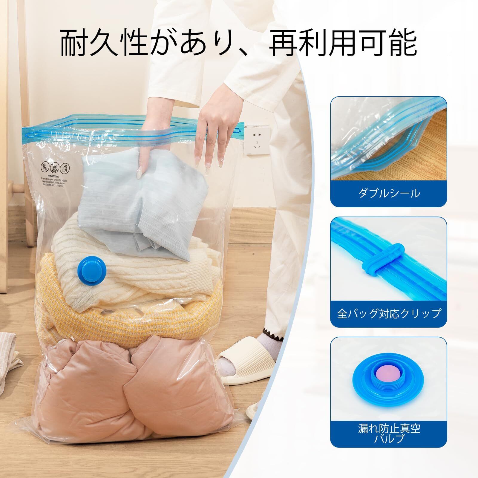 耐久性と気密性:衣類圧縮袋は、トリプルシールターボバルブとダブルジッパーシールを採用し、強力な密封性を備えています。厚みのあるPA+PE素材で作られており、破れにくく再利用も可能です。固定クリップも付いているので、密封作業をより迅速に行うことができます。