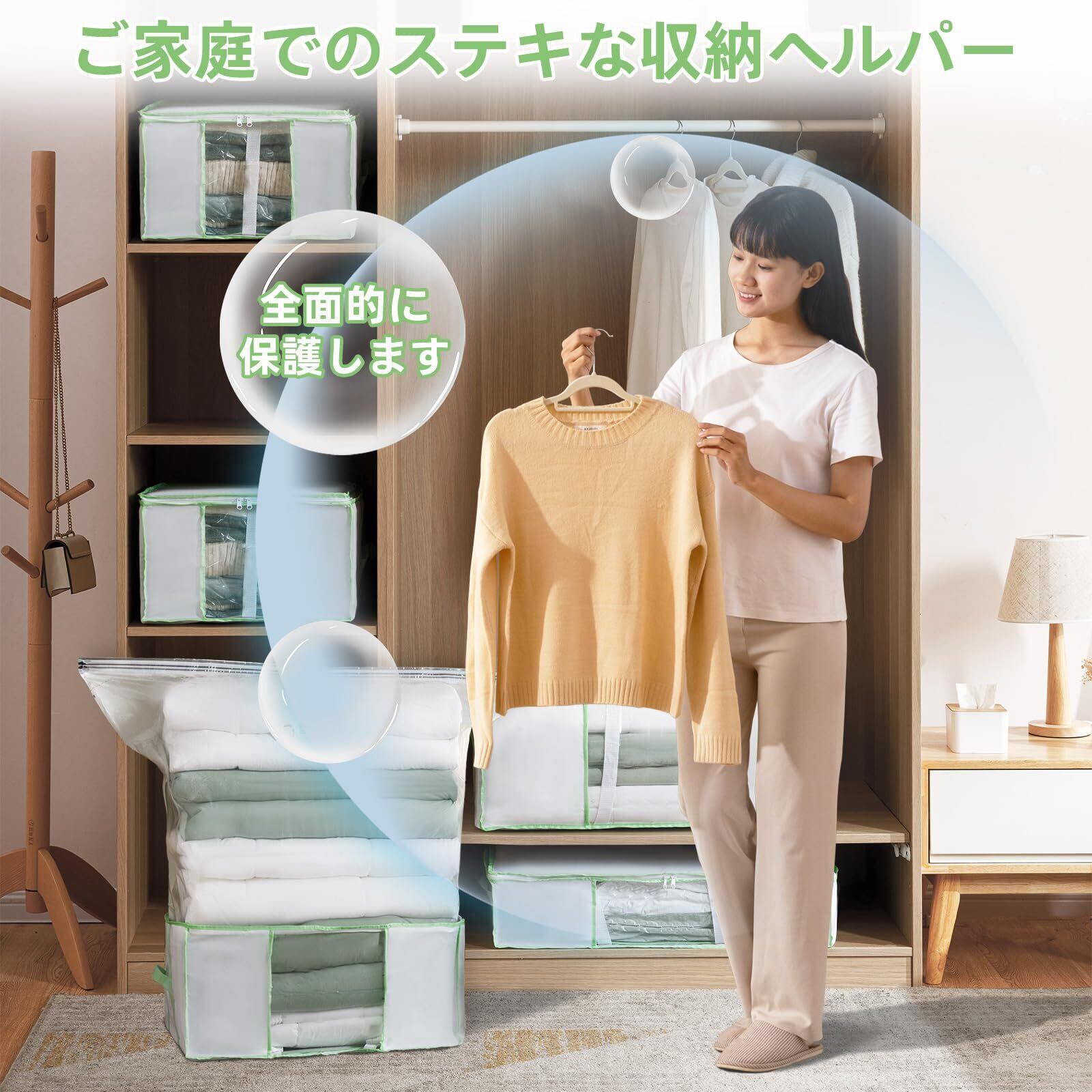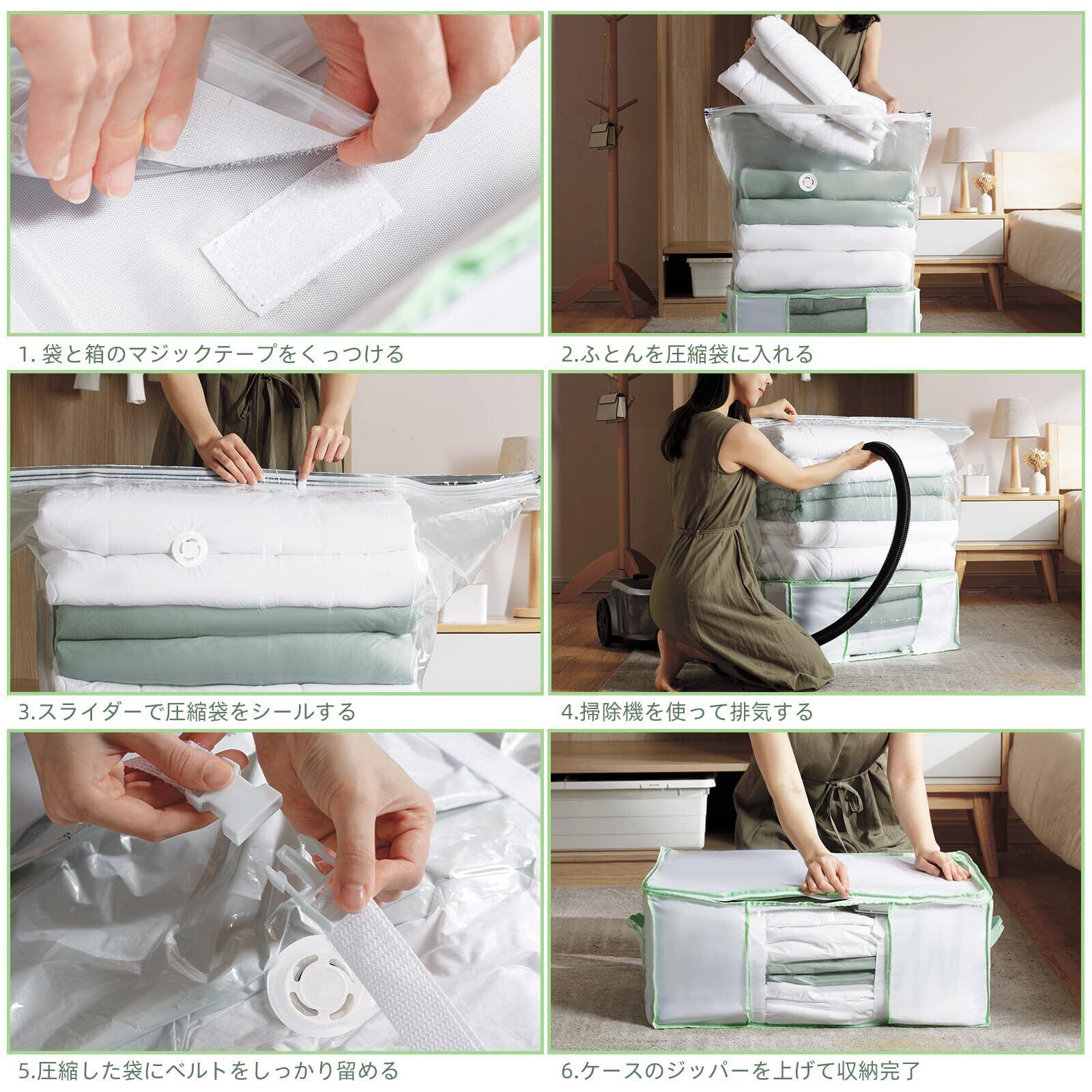 ✨【掃除機を使用することで、手間いらずで簡単に圧縮が可能です!】これにより、忙しい日常の中でもスムーズに収納を行うことができます。特に引越しや衣替えの際に大変便利です。