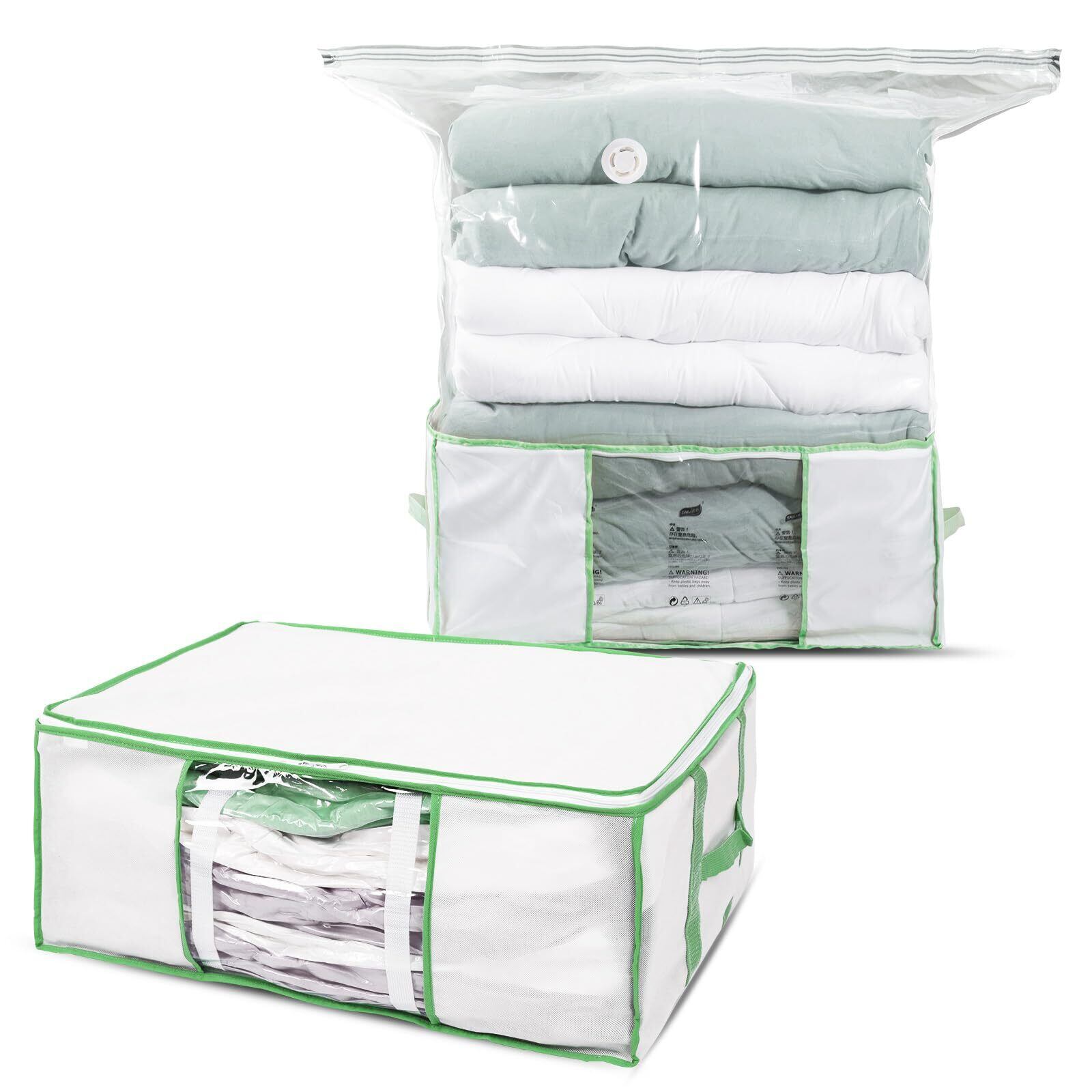 耐久性のある材質:収納ボックスの内部に丈夫なプレートが支えて、型が崩れにくくて、何個のボックスを積み重ねることができます。収納ボックスと圧縮袋がぴったりとフィットし、安定して変形しません。柔軟な素材で、丈夫で耐久性があります。革新的なエアバルブで、操作がより便利になります。圧縮バッグは一方向弁を採用しており、気密性があり、あらゆる掃除機に対応しています