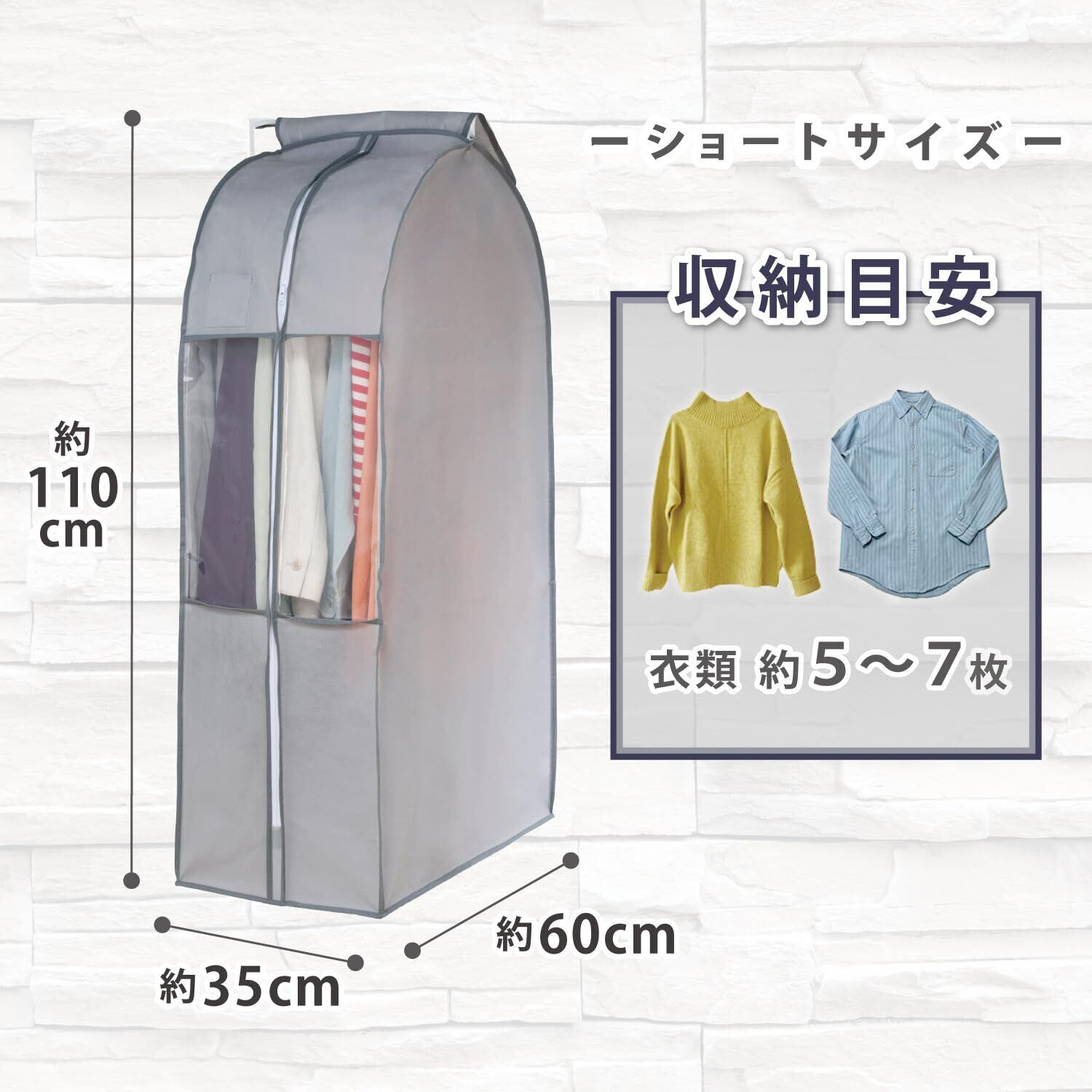 【衣類をまとめて保管】:オフシーズンの洋服をまとめてホコリなどの汚れから守ります。5~7枚までの衣類の保管が可能。