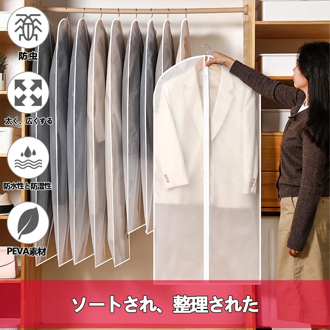 ✨【「衣類 防塵カバー」は、大切な衣類やコートをしっかり保護するための必需品です!】5枚組は、お手持ちの衣類をスマートに収納し、湿気やホコリから守ります。全面半透明デザインにより、中身が一目で分かり、便利な衣類の取り出しが可能です!