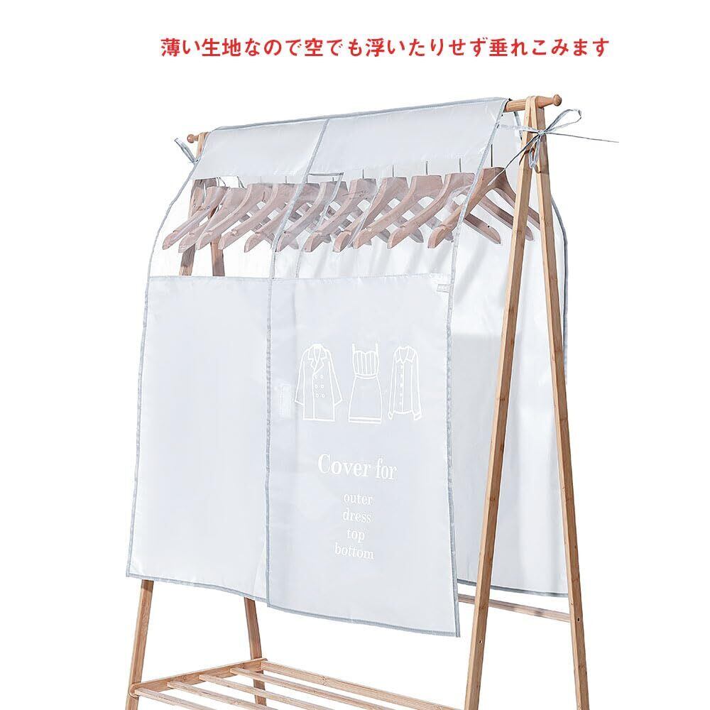 【仕様様】幅90cm*110cm長さサイズでハンガーラックから洋服をしっかりカバーできるので、押入れ、クローゼット中のパイプハンガーにかけてある洋服をしっかり守るし手洗いもし易い生地なので長持ちします。