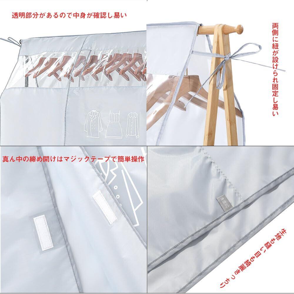 【マジックテープで洋服の取り出し簡単】ラックカバーの真ん中にはマジックテープが設けられ閉め開けがとても便利です。衣類カバー内に掛けてあるスーツや制服等が日にちが経つに連れ積もってくるホコリから衣類を守ってくれるしカバーからの取り出し取り入れも便利です。