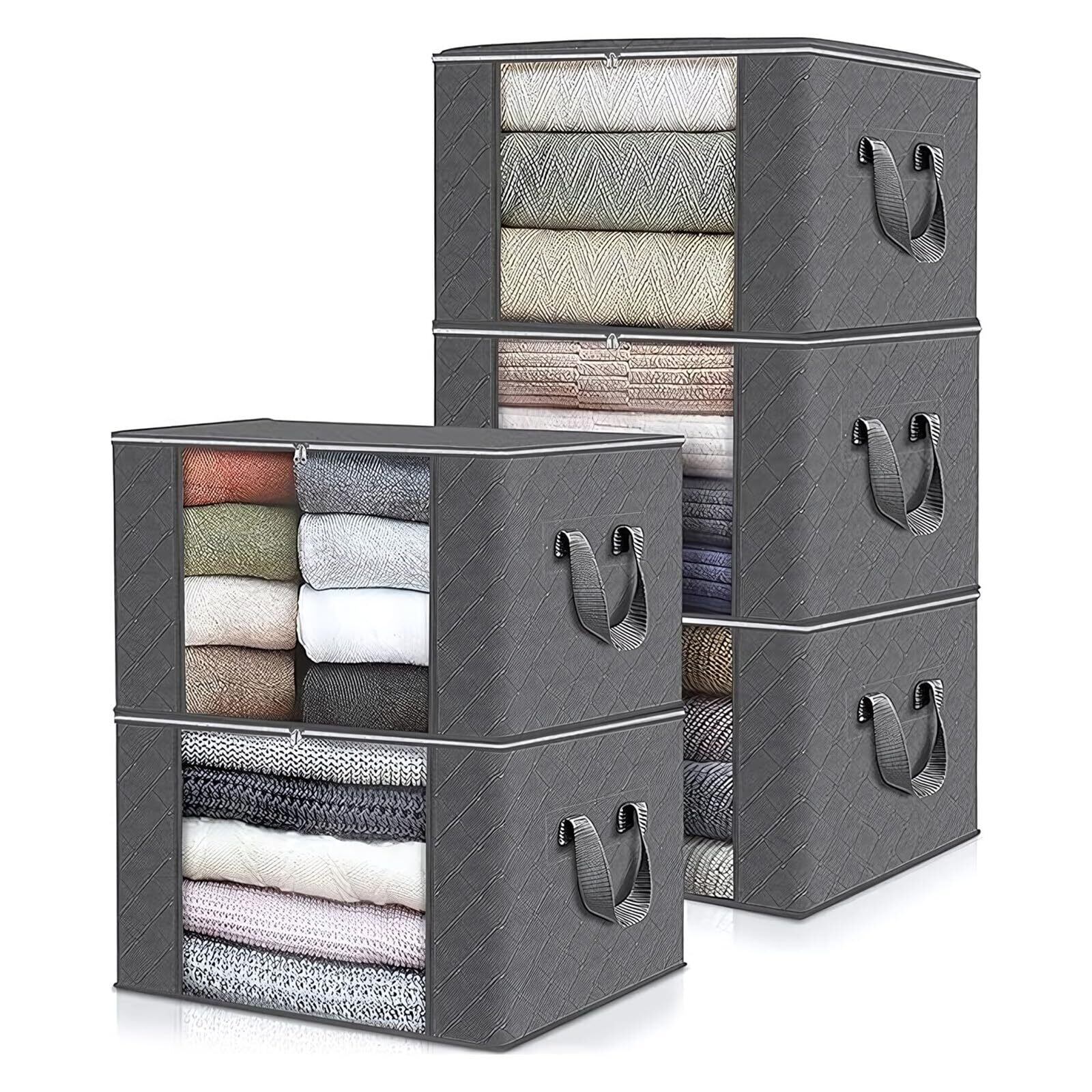 GOSO 布団収納袋 衣類収納ケース 5個組 60*40*35cm衣装ケース 大容量 毛布 洋服収納 耐荷重 25kg 折りたたみ式 収納ボックス 衣装収納 不織布 大型 引越しバッグ 布団収納カバン キャンプ 旅行 省スペース ビッグバッグ 寝具ケース clothes storage