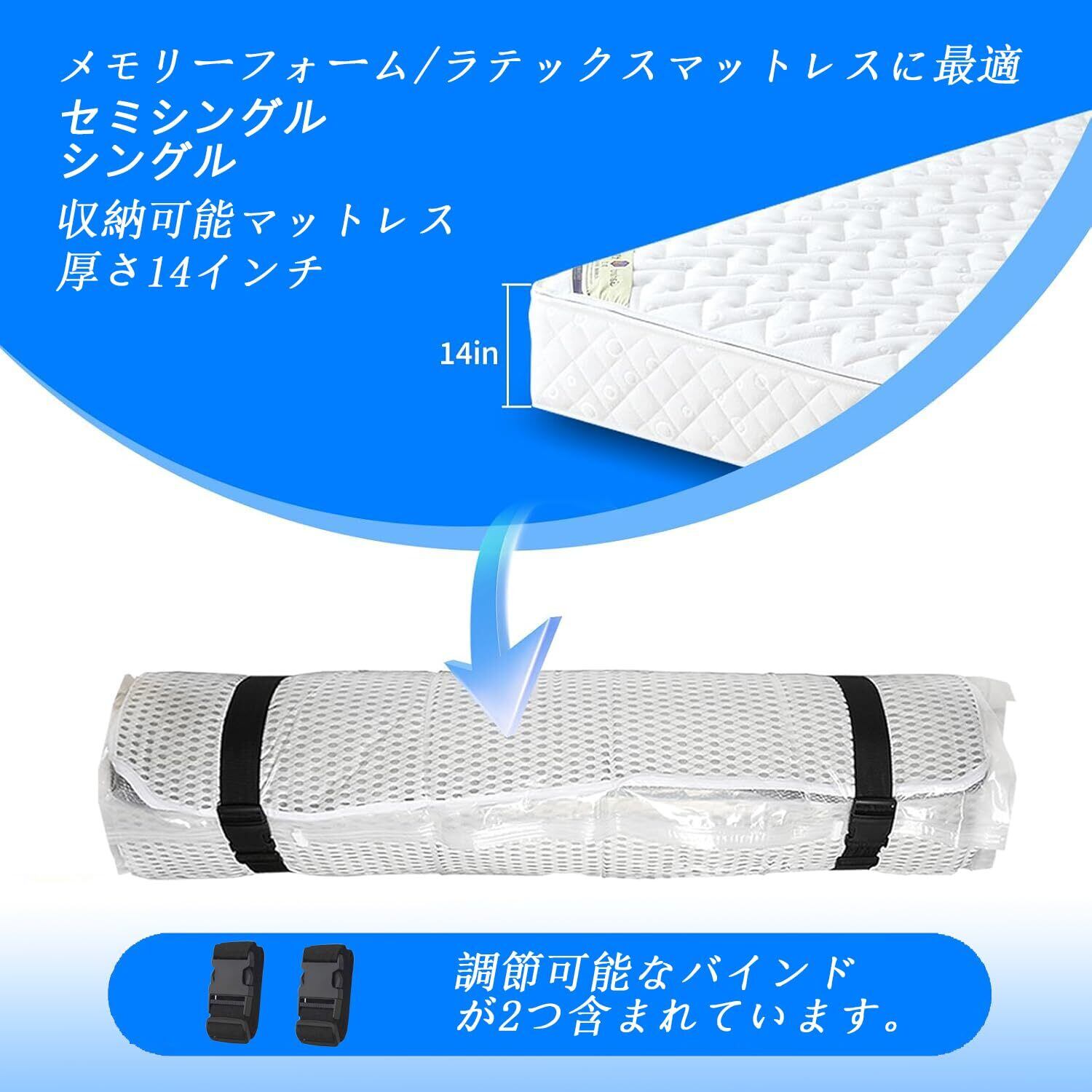 記憶スポンジ/ラテックスマットレスの収納に特化し、厚さ14インチまでのマットレスを収納できる。マットレスのサイズを測って、適切な袋を選んでください。