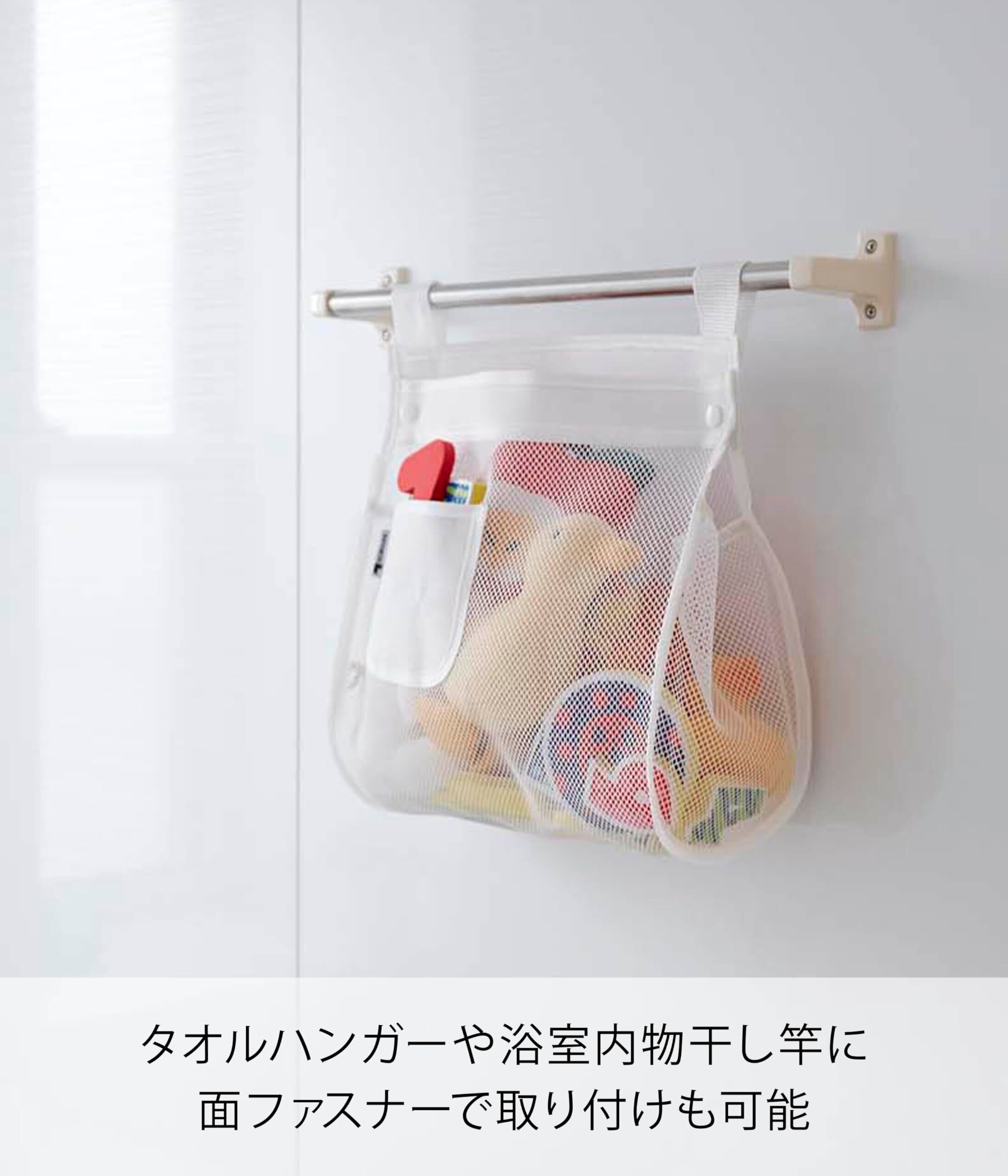 \【◆山崎実業 収納袋 お風呂おもちゃ袋 スクエア ホワイト 3367】お風呂の空間を美しく整理整頓!/
