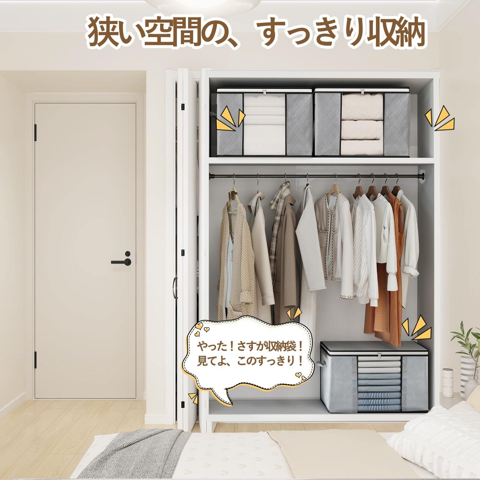 【高品質不織布】:高品質不織布採用で、優れた通気性、防カビ・防ダニ機能を実現。柔軟で耐久性があり、繰り返し使えるエコ設計で、季節を超えた衣類の保管をサポートします