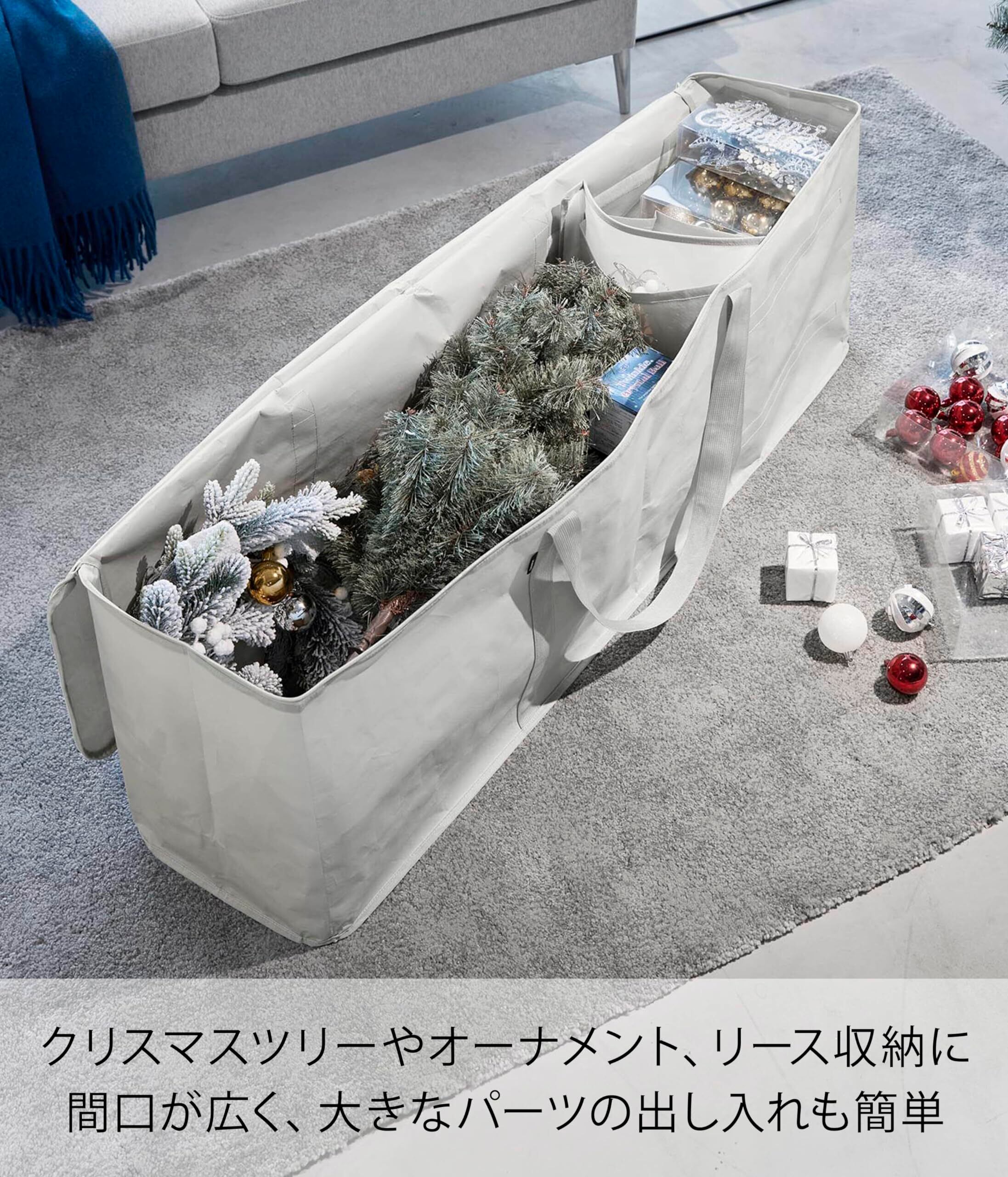 間口が広いので収納しやすく、ツリーのサイズに合わせて仕切りの移動ができます。