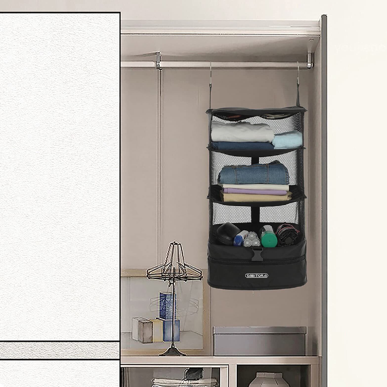「TABITORA クローゼット吊り下げ収納」は、機能性とスタイリッシュなデザインで、収納ニーズにしっかりと応える理想的なアイテムです。快適な収納環境をお楽しみください!