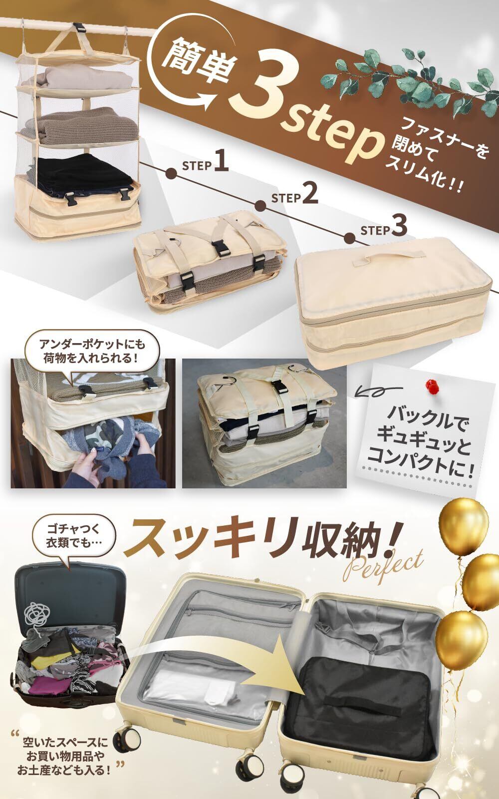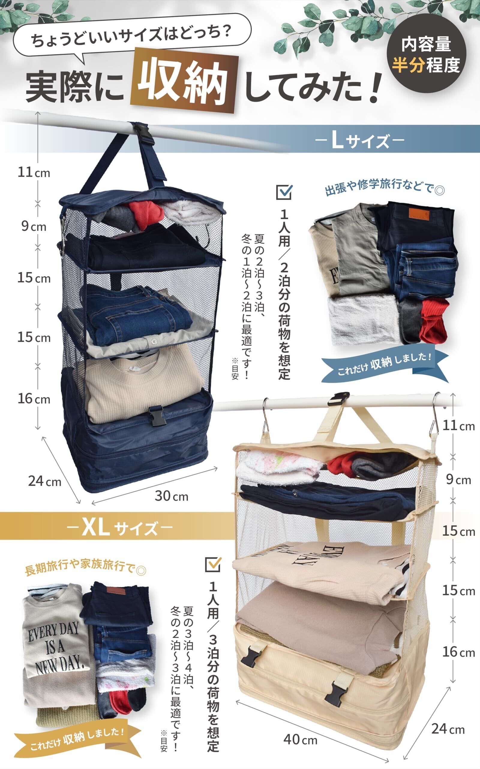 ✨【吊り下げ式なので、どんな場所でも掛けられるので、荷物の出し入れがしやすく、特に狭い宿泊先で重宝します!】必要な物がすぐに取り出せて、時短にも繋がります。