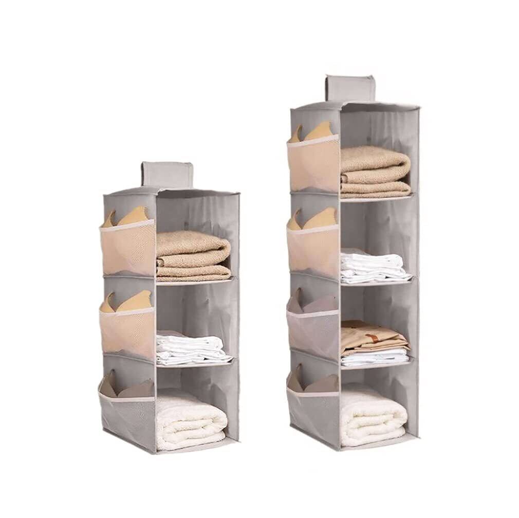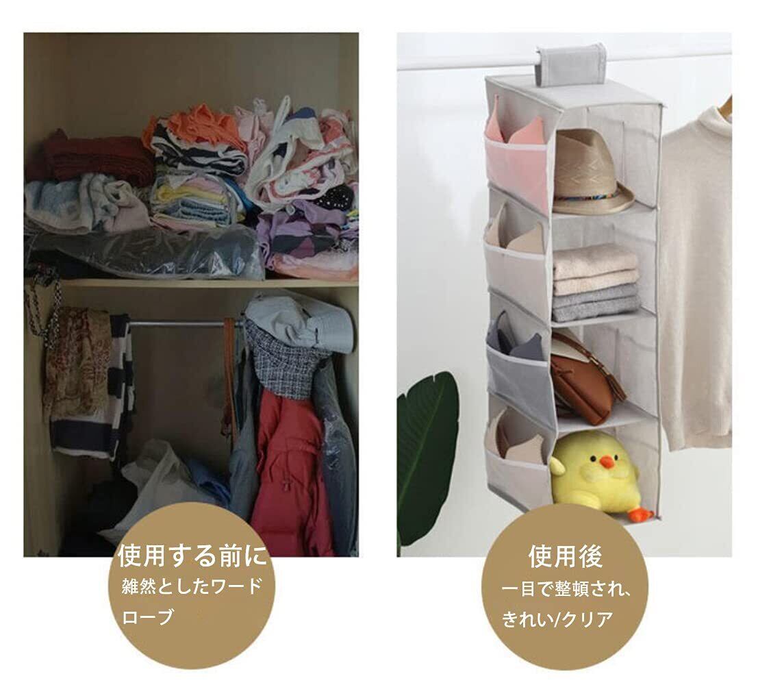 吊り下げ収納 クローゼット 収納 吊り下げ 水洗い可能 防湿防カビ 取り付け簡単 つりさげ 収納 衣類ラック 下着 靴下 帽子 収納 クローゼット つりさげ 収納 収納 バッグハンガー 4段式 3段式(4段式 ライトグレー)