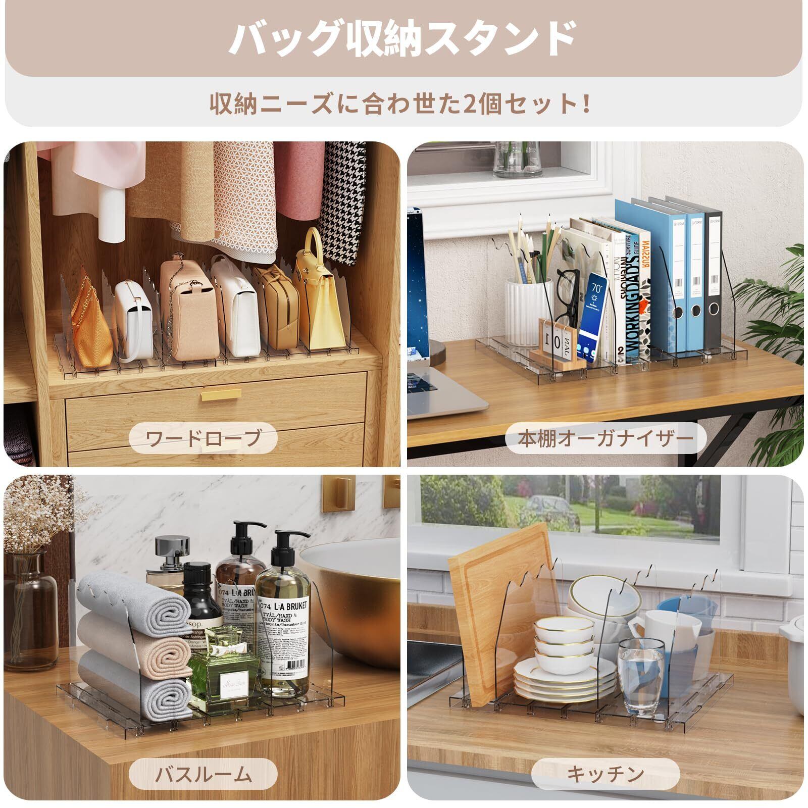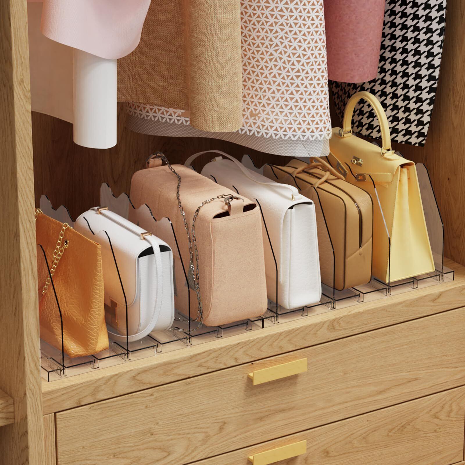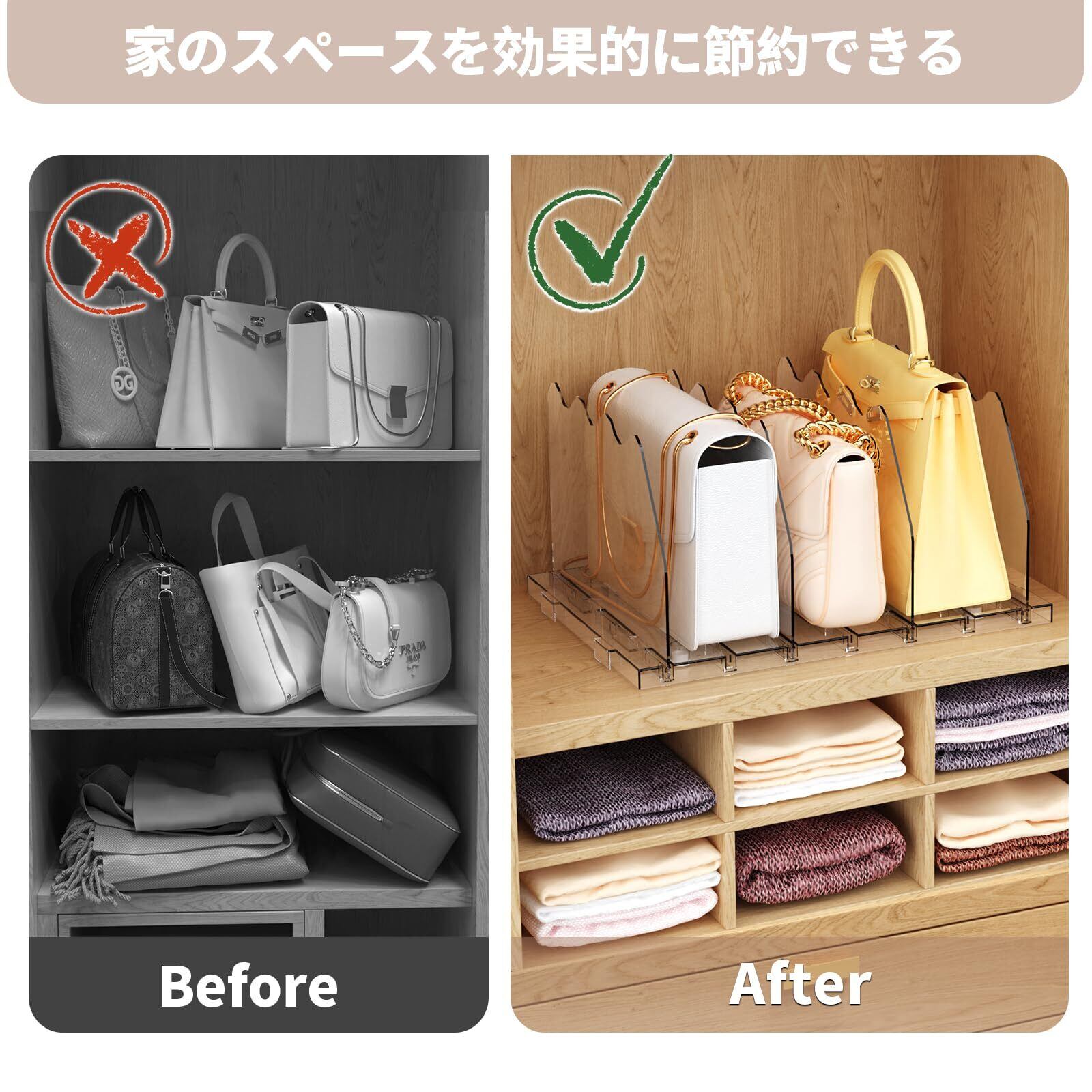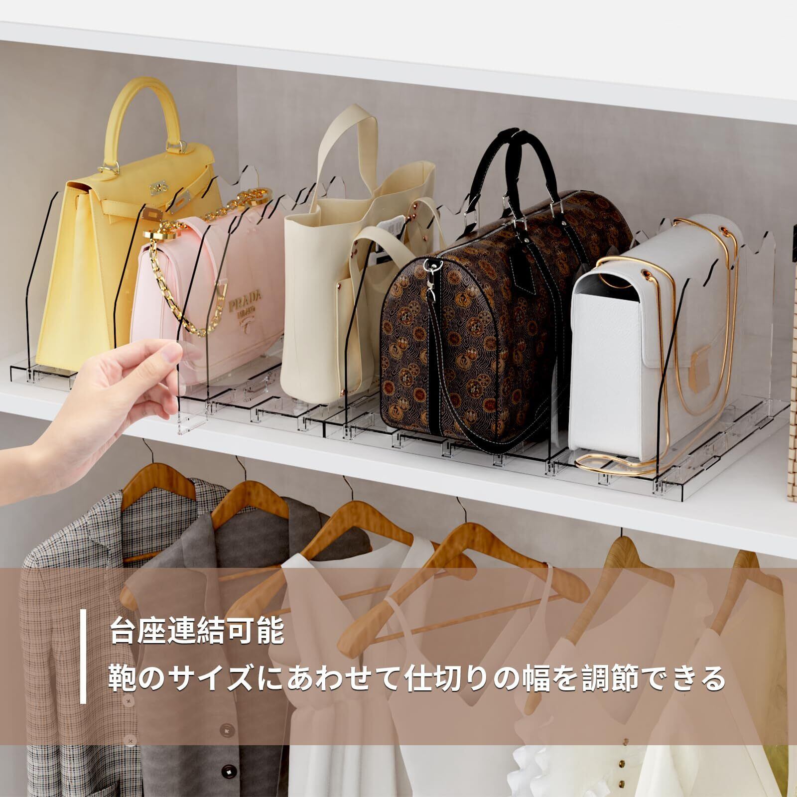 ✨【仕切り幅を自由に調整できるので、収納するアイテムに合わせてカスタマイズ可能!】様々なサイズのバッグや小物をしっかり収納でき、すっきり整頓された印象を与えます。